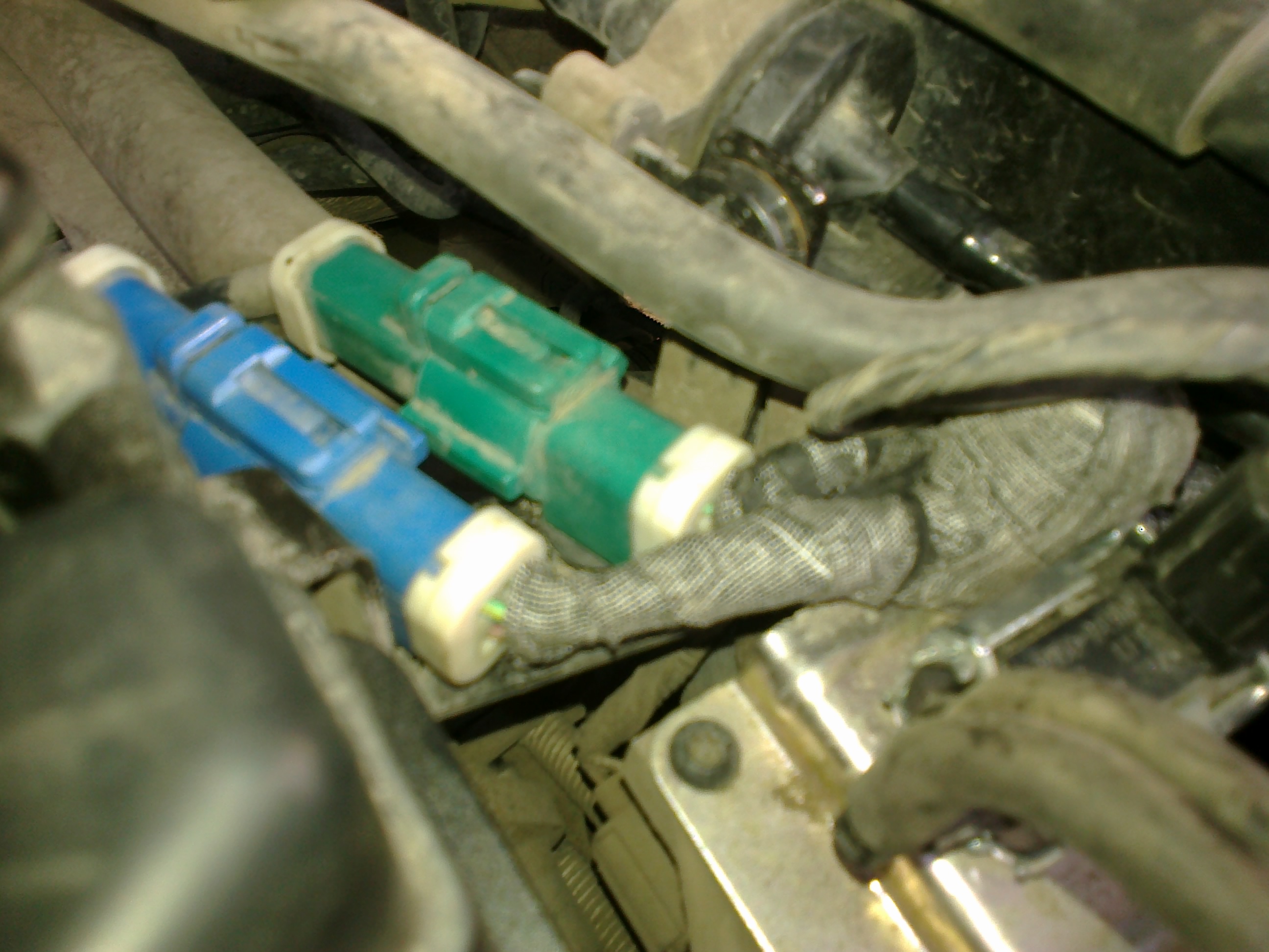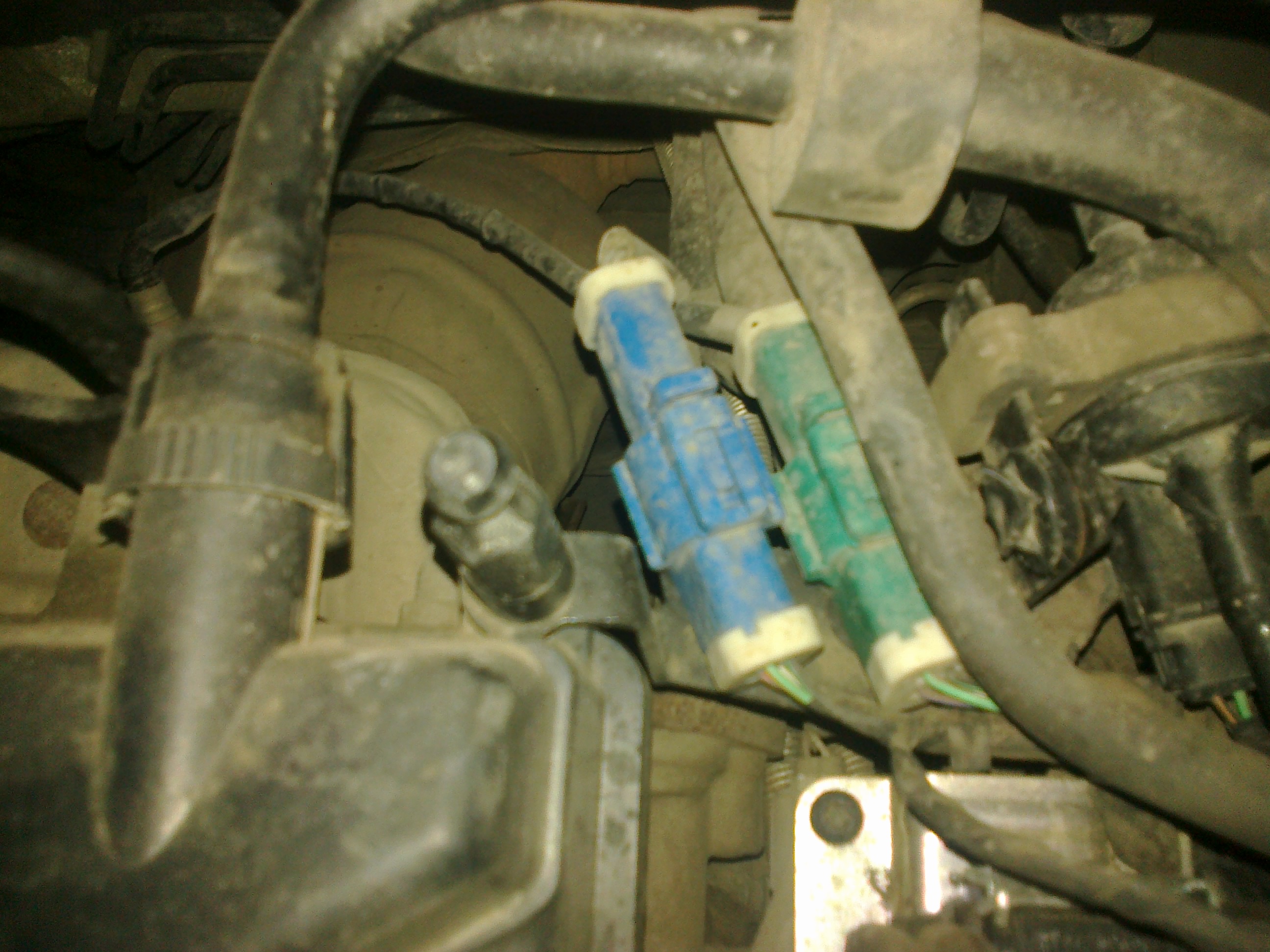 Форд фокус 2 . Первая и вторая лямбда идут под капот . Зеленый разъем первая лямбда ,а синяя вторая .