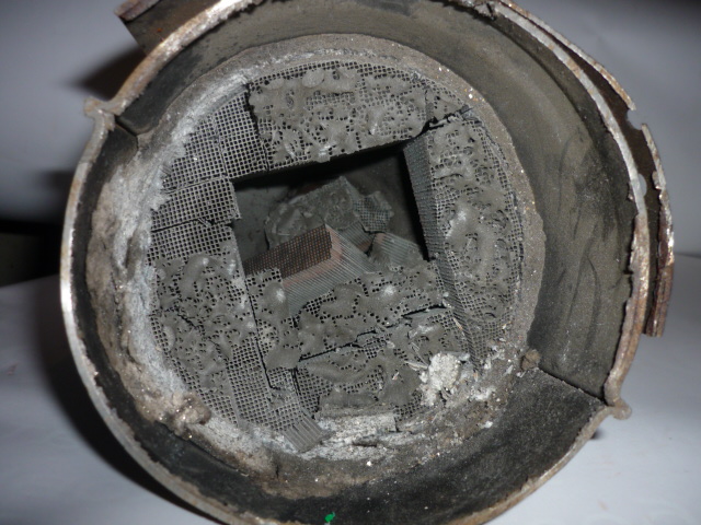 Катализатор рекомендуют менять через 100 тис. скорее всего он на какую-то часть забит,и вообще так как катализатор стоит очень близко от мотора, то летом во время жары поры расширяются сильнее чем зимой и машина давится .А бывает и такое. Смотрите фото.