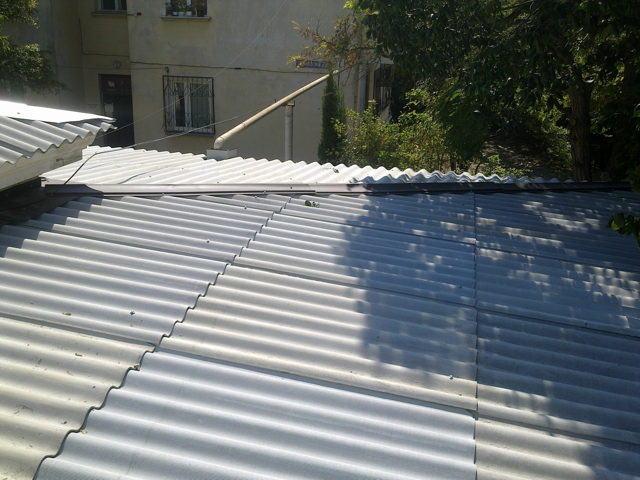 Еще в июне, в первый приезд, знакомые вывели на ребят по серьезному занимающиеся строительством в свободное от работы время (IMG:style_emoticons/default/biggrin.gif) . За время моего отсутствия они по уговору выполнили те работы, которые крайне неудобно выполнять одному. К моему текущему приезду парни сняли временную крышу с пристройки, накрыли ее постоянными "на века" (IMG:style_emoticons/default/smile.gif) фермами, заменили уже ставший "хрустким" шифер, подняли стены телепортера эМ-Жо до уровня пристройки. А также проложили крышу термоизоляцией Крыша изнутри Поднятая крыша над телепортером изнутри. Справа хорошо видно на сколько подняты стены и то, что для их возведения использован местный ракушечник. А слева видно, что дверь, в пристроенный в середине 50-х коридор с удобствами, прорублена на месте оконного проема. А уже из коридора сделан отдельный выход для угловой квартиры на улицу. Так что тюнинг не я начал (IMG:style_emoticons/default/laugh.gif) Крыша пристройки сверху |