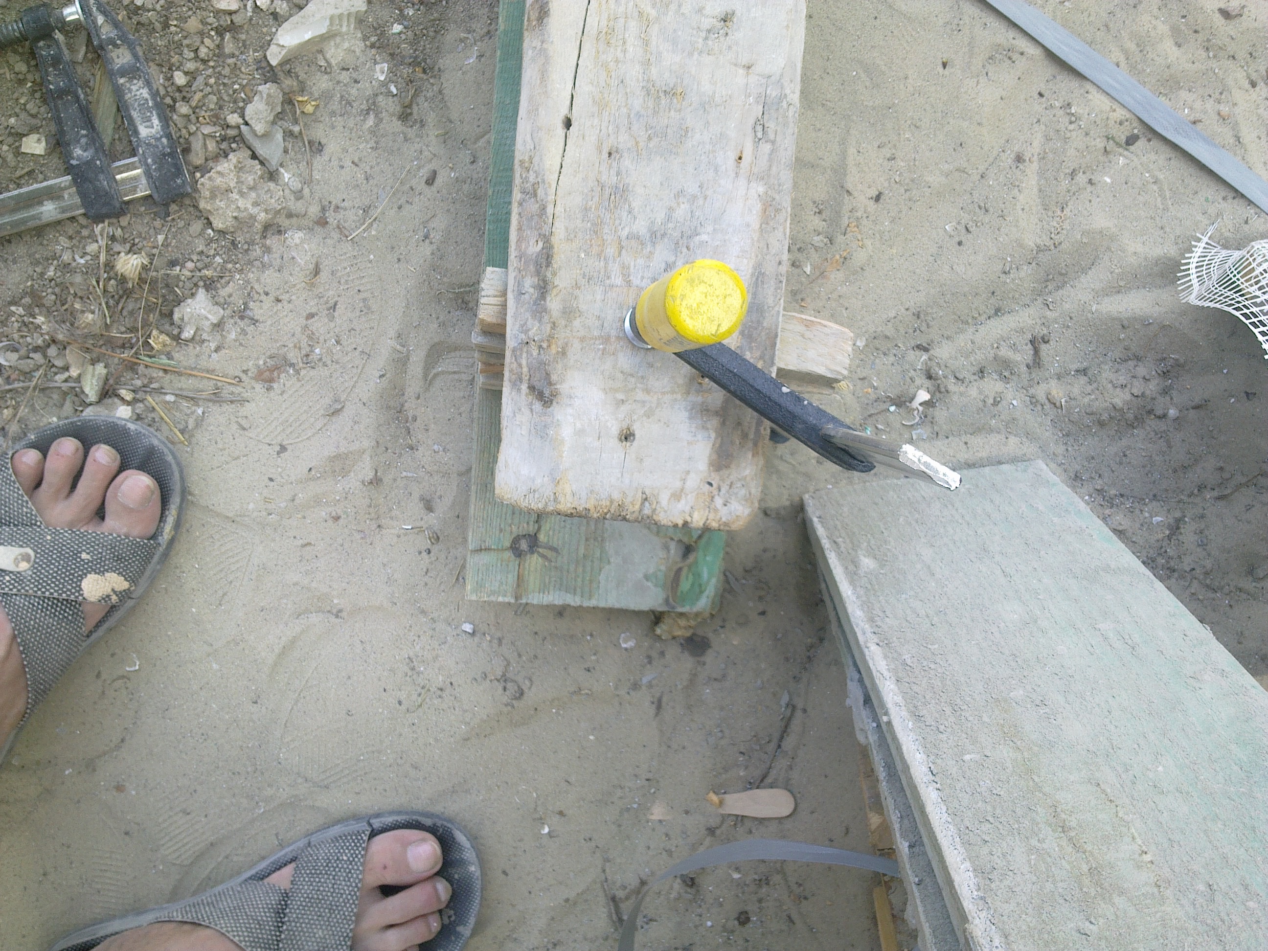 Но!!!!!!!!!!! Есть ещё женщины!!!!!!!! Поэтому, так как знаю, что завтра, несмотря на сегодняшние... (IMG:style_emoticons/default/cool.gif) Ну в общем делаю все так, чтобы завтра, если что, бордюры можно было передвинуть туда, где лежит женское сиюминутное счастье... В общем копать глубоко смысла нет. Лишь бы нижняя часть опалубки не разъезжалась. К тому же ее вынутый грунт, и присыпанный к опалубке, придержит доски. Вооружаюсь циркуляркой и пилю доски, собираю опалубку, придерживаясь принципа: по прямой - так по прямой, а если поворот то с внешней стороны поворота доска с напуском. Сейчас она внизу. Ну копаем и пилим одновременно. А тут ... облом ... вывернув виноградный столбик натыкаюсь на муравейник Даю ребятам несколько часов времени на то, чтобы спасти свои яйца А сам топаю опять на море... Ну естественно приходится армировать "как для танка" |