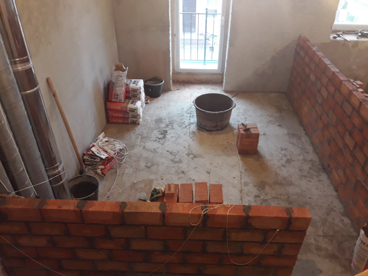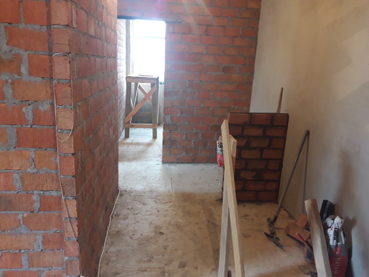 В тауне у меня нет ни одной перегородки. Планирую перегородки из полнотелого полуторного керамического кирпича на ребро (толщина стены 88 мм до штукатурки). Но, чтобы было проще планировать помещения и строить стены сразу под 90 градусов, решил сначала оштукатурить периметр. На этой неделе ко мне должны выйти штукатуры для этих целей. Штукатурить будут цементной штукатуркой (пытались меня отговорить - не смогли). Далее, после подсыхания, буду строить стены из кирпича и их штукатурить.