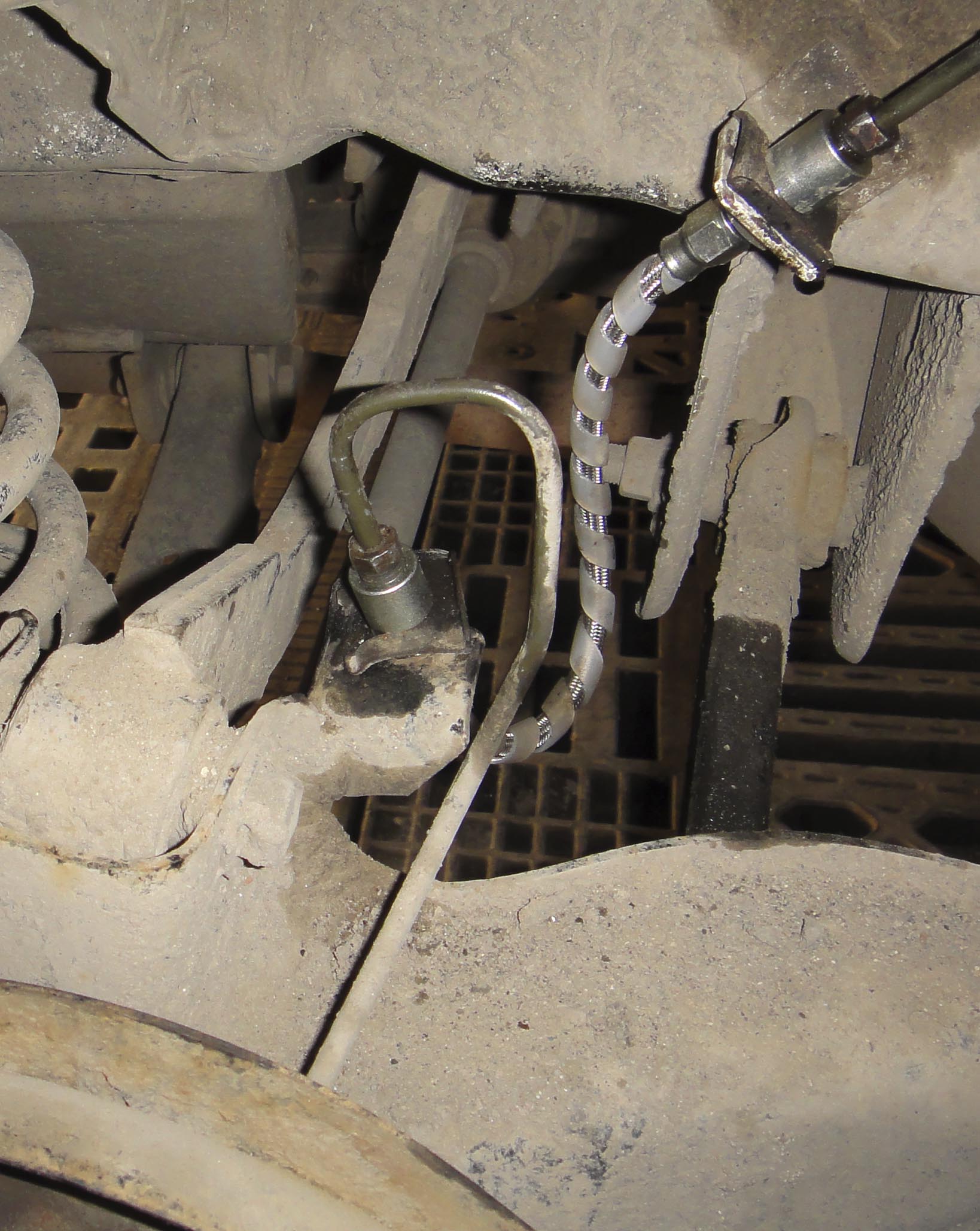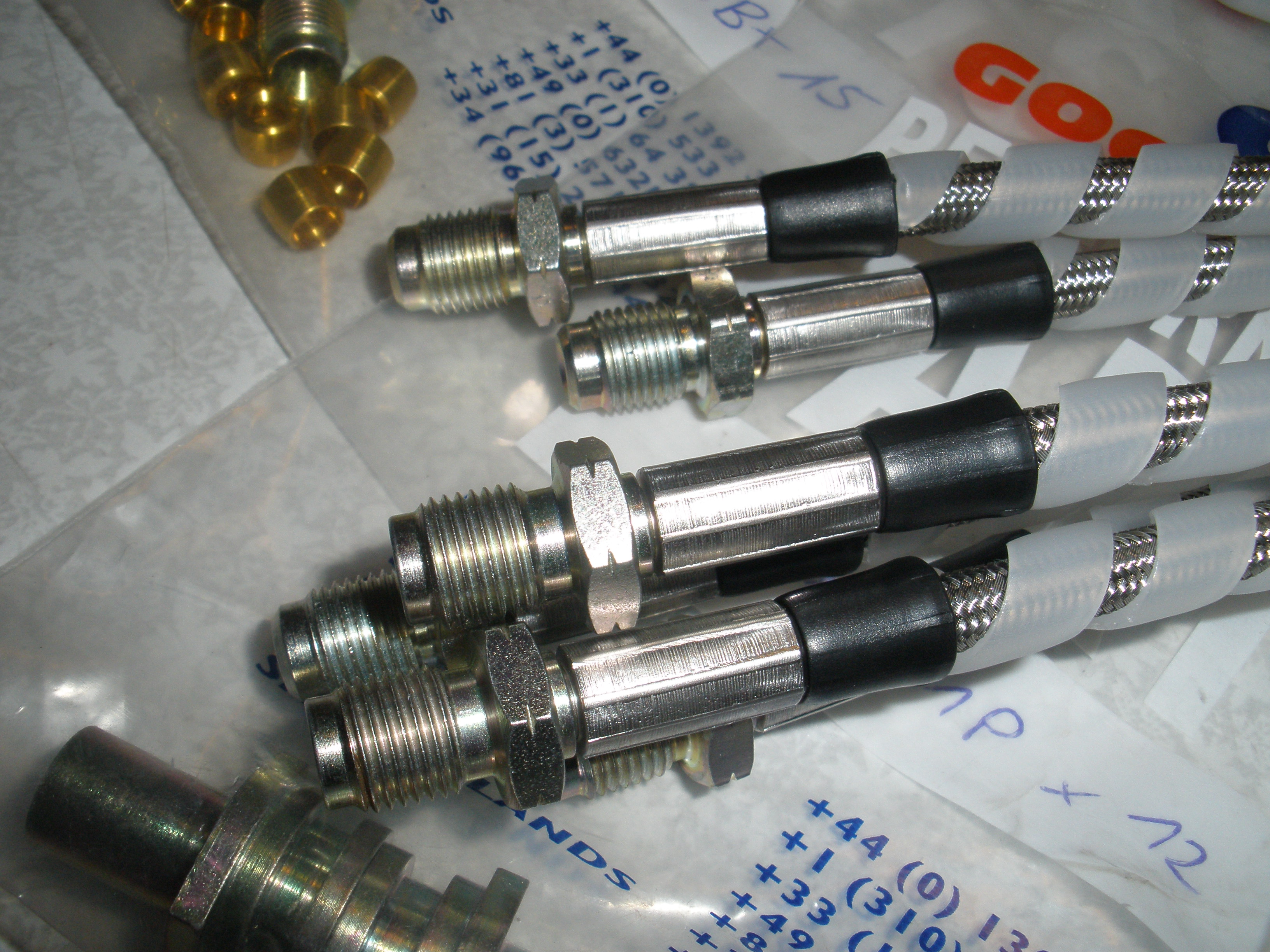 Вот эти гаечки на штуцере, крутить нельзя ни в коем случае, ни на затяг, ни тем более на ослабление. Они затягиваются определенным усилием. Так же не стоит заморачиваться, что некоторые затянуты до упора, а у некоторых есть зазор, там все зависит как ляжет внешняя оплетка под эту обжимную гайку. Короче, не трогать и не крутить!!! |