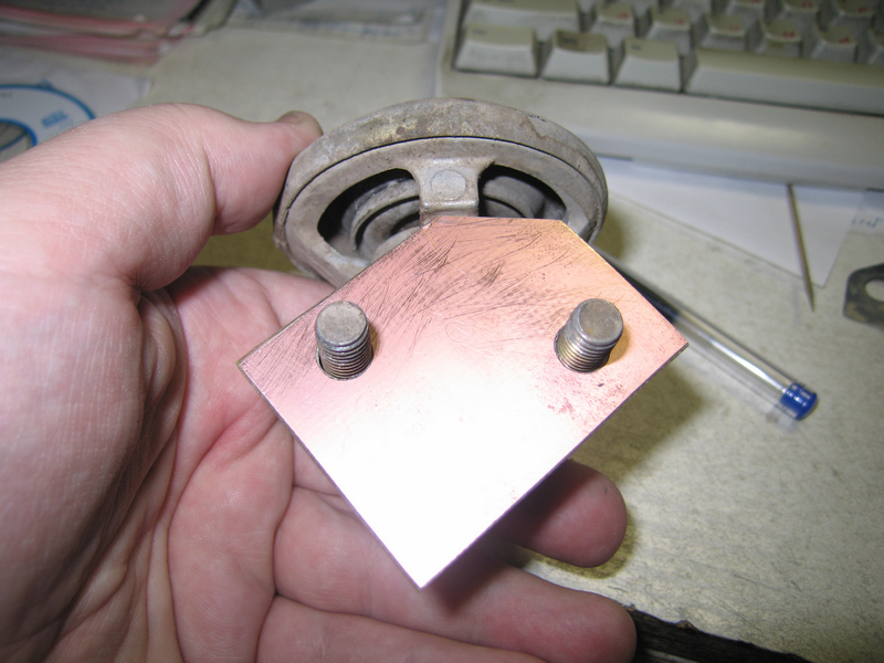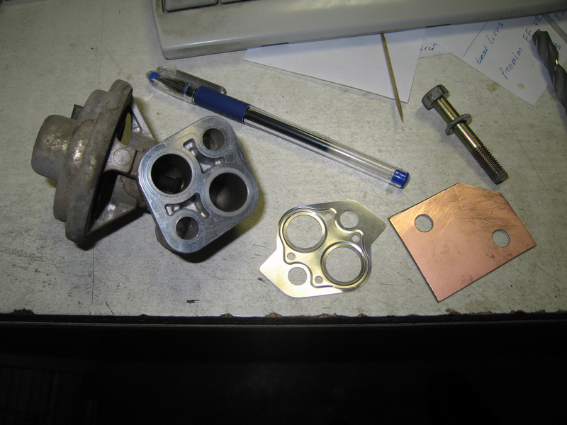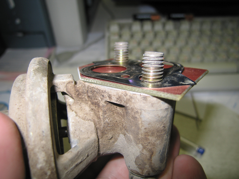 Из чего может по быстрому сделать такую прокладку радиотехник? Правильно, из стеклотекстолита... (IMG:style_emoticons/default/smile.gif) Вот мой микрофотоотчет: Берем небольшой кусок стеклотекстолита, режем его примерно в размер, сверлим две дырки и собираем "бутерброд": Родных болтов вполне хватает, чтобы прижать клапан к посадочному месту, даже с "нагрузкой" в лишние полтора миллиметра. Когда сегодня разобрал эту конструкцию, выяснилось, что текстолита я таки взял с излишним запасом. Во что-то он там при сборке уперся сбоку. Благо материал податливый и он просто изогнулся "по месту". Так-что лучше сильно от размеров прокладки не отклоняться в плюс... Заодно, пока узел был разобран отсканил прокладку и сделал типа чертежика в масштабе 1:1. Кому вдруг захочется повторить, сможет просто распечатать PDF чик, вырезать по контуру - вот вам и образец.