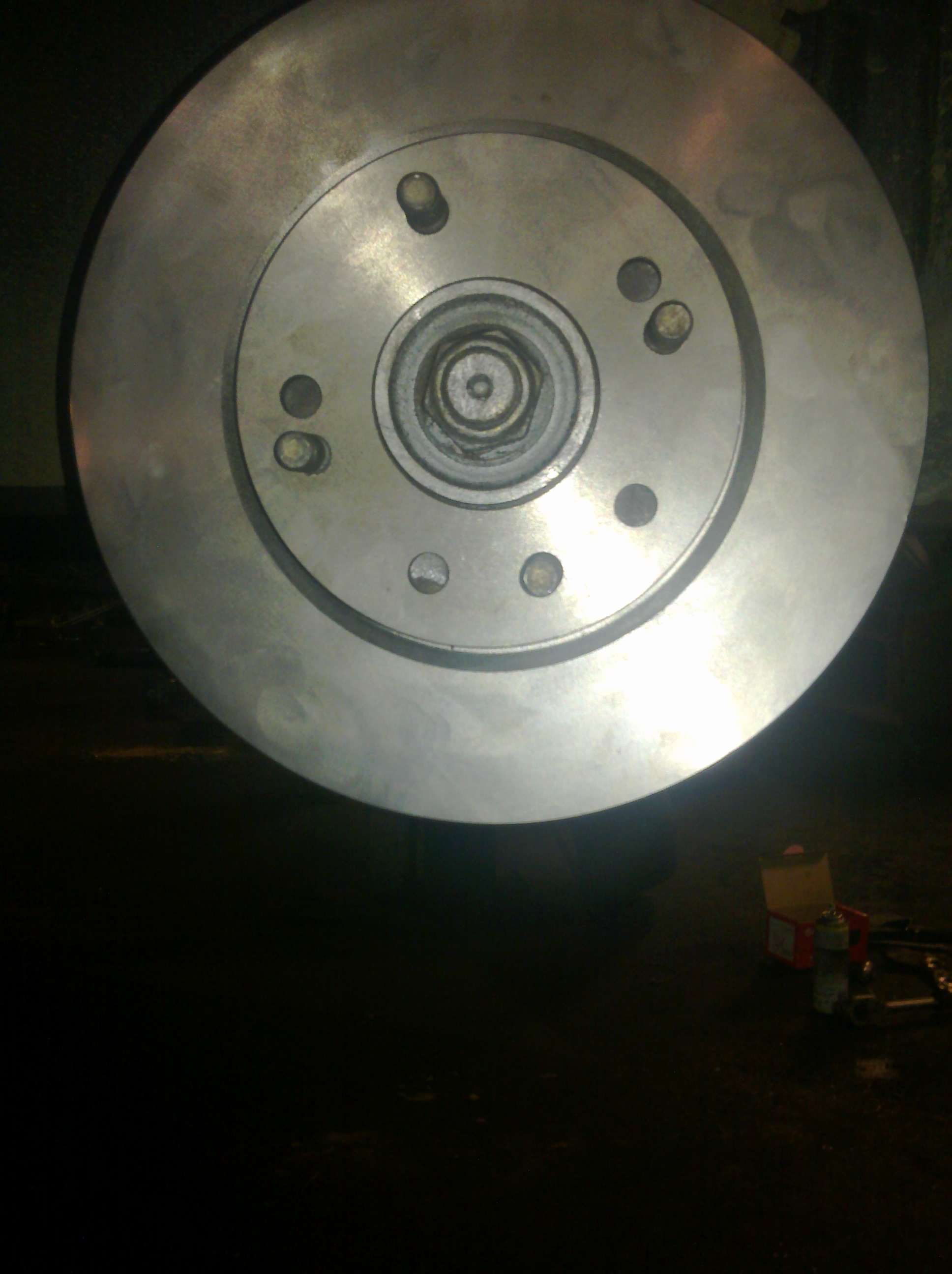 !внутренний d диска оказался на 1,5 мм меньше чем наружный d ступицы, пришлось по возможности равномерно стачивать шкуркой d ступицы пока диск не налез на нее. Может надо было проточить на токарке? сначала так и думал, потом проанализировал... и это оказывается не рабочая поверхность ступицы, тем более после токарь увеличил внутренний диаметр торм. диска, т.е. на данный момент диск садится не в притирку из чего следует что биение не от сюда(внешний диаметр ступицы не соприкасается с торм. диском), так же рабочая поверхность дисков была проверенна магнитной стойкой на биение, коего не выявленно. |