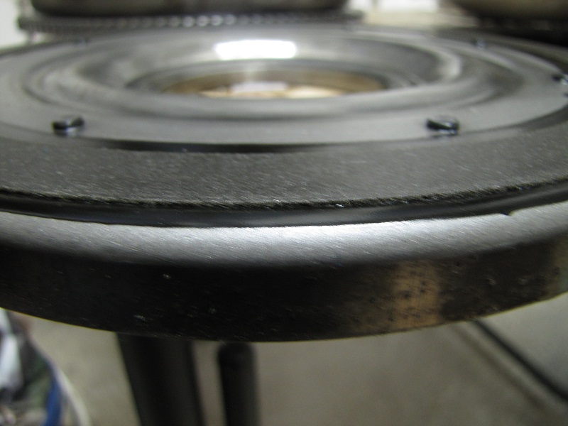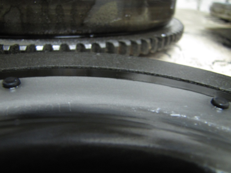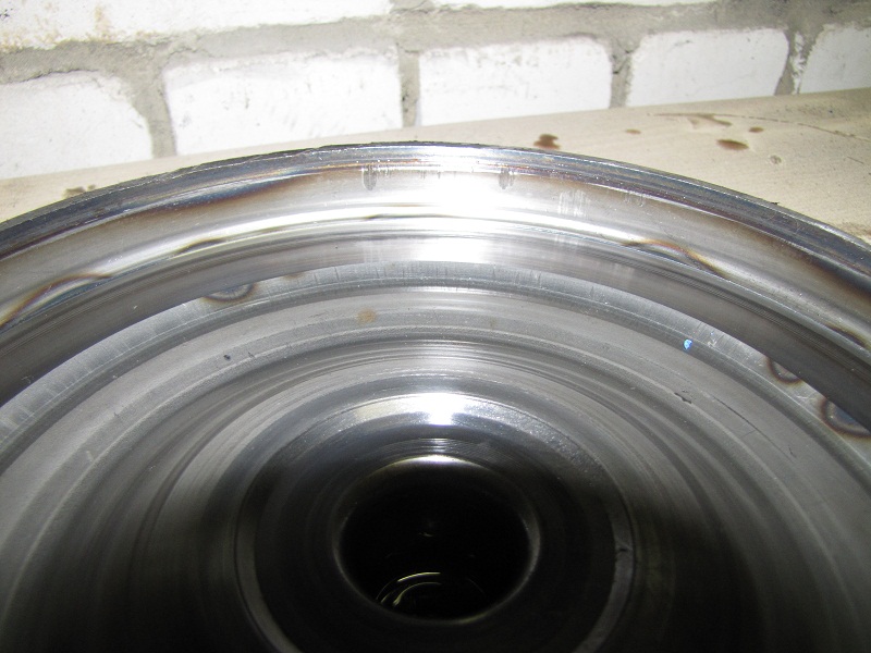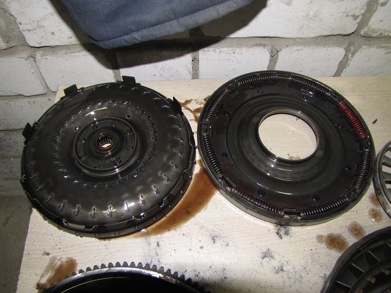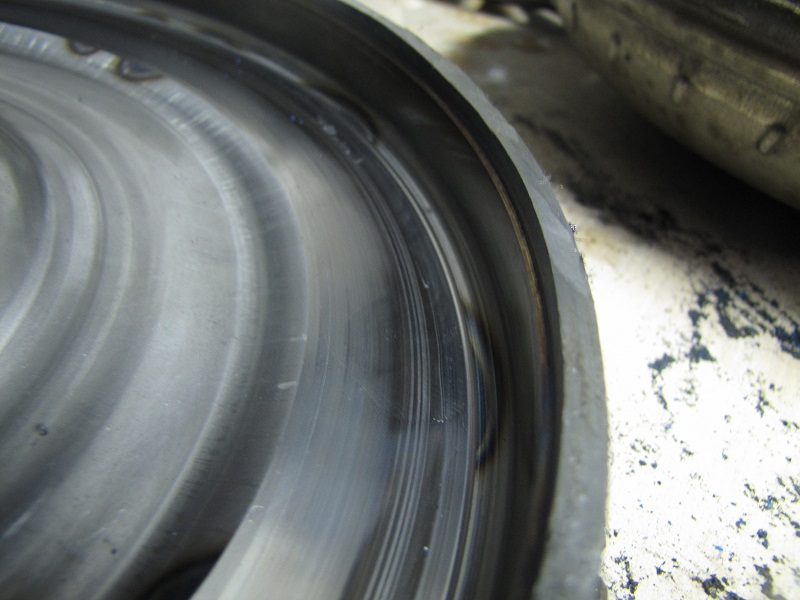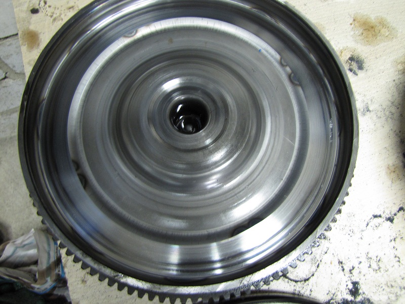И так, по просьбе Yuriy_R распилин гидротрансформатор. Какая допустимая толщина фрикционной накладки должна быть не знаю, но износа на ней не видно. Зато глубокая канава прокопана в корпусе ГТ, да такая, что еще немноги и пошел бы тереться метал о метал.
