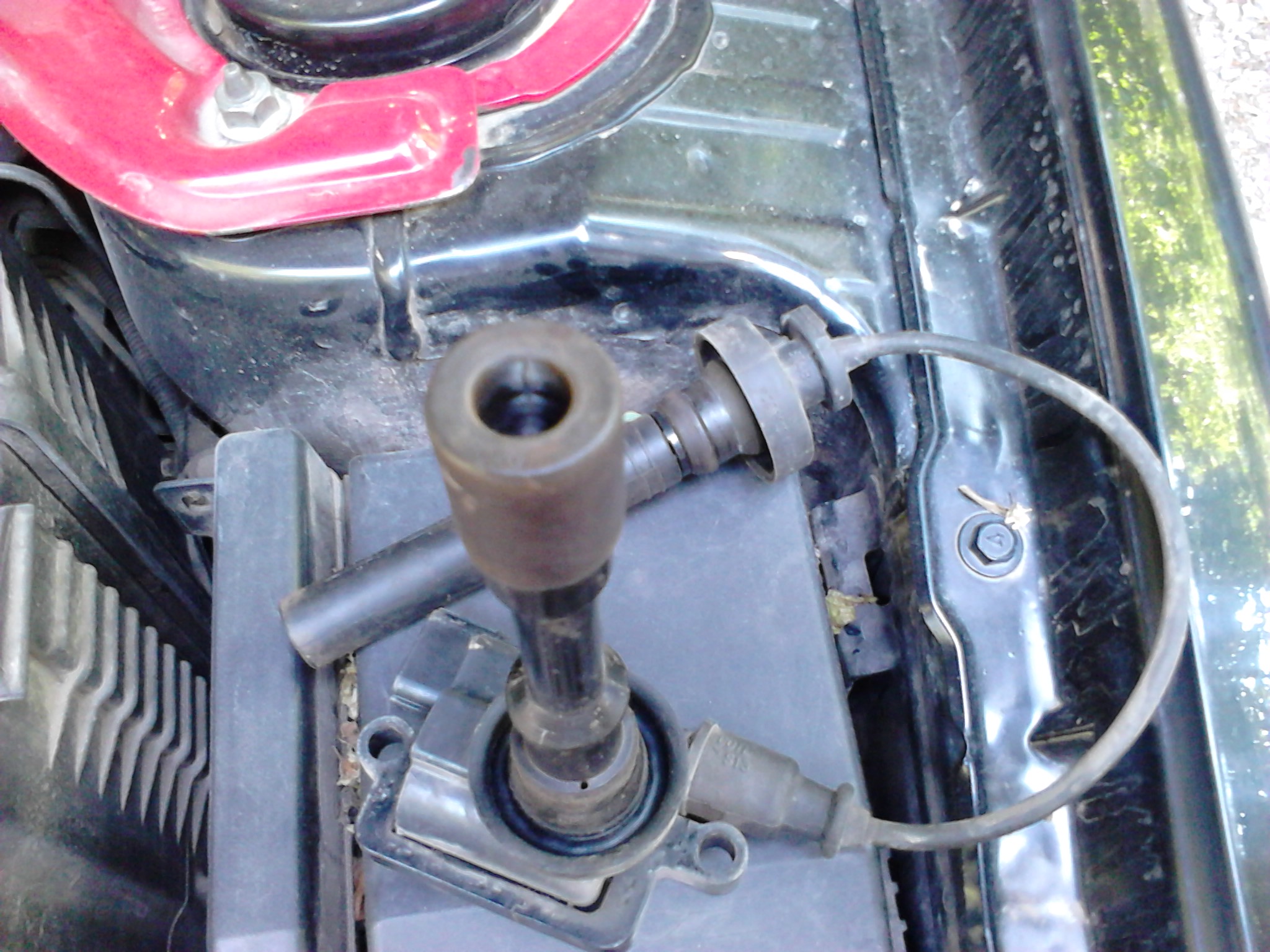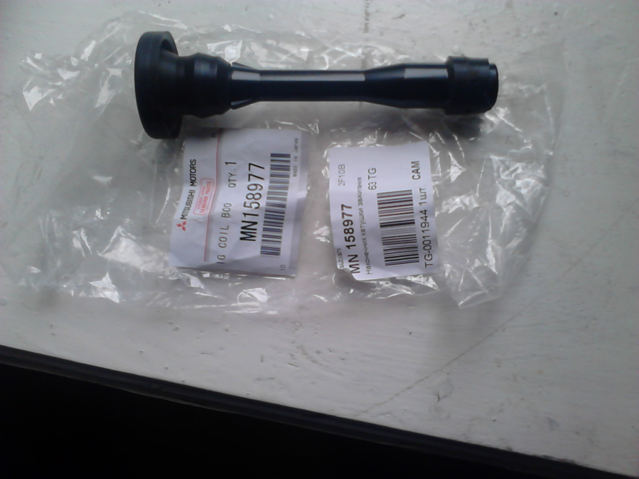 Пробивает наконечник свечи. Кто-то на форуме подсказал, что мол этот наконечник MN 158977 свечи полностью как наш. Ну могу всех огорчить, что это не так, он длиннее на 2 см и его на двигатель не прикрутишь. На фотке это я его уже покурочил, думал обрезать можно, а он оказался не цельно резиновым, а просто сверху натянули резинку как г......н (IMG:style_emoticons/default/dry.gif)