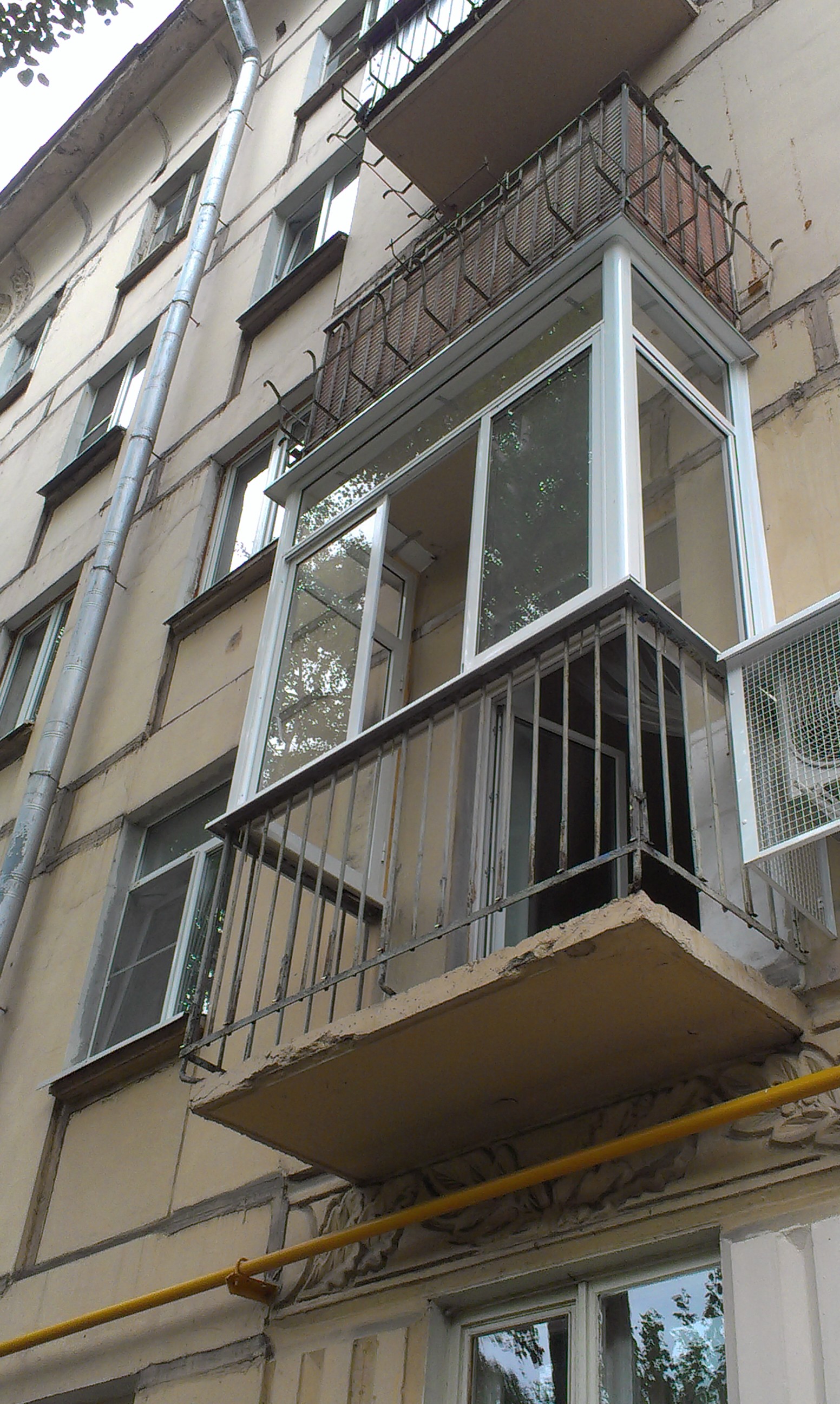 По поводу рухнет балкон - знаю что в старых домах их по новому перезаливают. Видимо ещё дополнительно армируют. Балконная плита представляет из себя консоль, которая вставленна в дом. На каркасы - прикинь, что будет легче, дерево или железяки для гипсокартона. Возможно ещё легче наружу будет выставить профнастил. Такое тоже практикуют. |