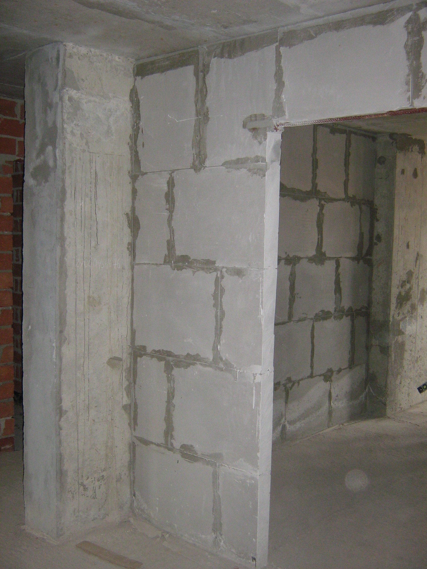 Так как каменщик из меня никакой, то жуть как боялся что стены выйдут кривые. Лазер я, в следствии дороговизны, пожадничал покупать, решив обойтись "верёвочкой". Ух!, как я ломал голову, как же применить разметочный шнур (IMG:style_emoticons/default/smile.gif) . Чуть ли не сетку из него хотел вязать (IMG:style_emoticons/default/laugh.gif) . В результате Сергей придумал для меня просто передвижной горизонтальный шнурок на двух натянутых вертикальных, протянутых от пола к потолку. Собственно сия конструкция пригодилась только на первых двух нижних рядах, а дальше я, обнаглев от собственных успехов, пользовался только уровнями. Так как начальных знаний у меня не было вообще, то излазив сайты производителей ГПГБ Кнауф http://www.youtube.com/watch?v=7mhylzM1PZo ( где-то на сайте Кнауфа раньше были подробнейшие текстовые инструкции с картинками по работе со всей продукцией и пользования инструментом. Сейчас найти не смог. ) Волма http://www.youtube.com/watch?v=upaA8sQGOkc...feature=related ( больше на этот ролик ориентировался, хотя и он уже сейчас несколько видоизменился ) А вот эти появились уже после моей постройки http://www.youtube.com/watch?v=K5JUmDK9qpA...feature=related и запытав вопросами Сергея, сварил в голове симбиозную кашу, ну и приступил помаленьку. С плитам перекрытий мне, прямо скажу, повезло - перепад по полу составляет всего 2 см в разных углах квартиры. Место где воздвигались перегородки оказалось практически горизонтальным, поэтому выравнивающей министяжкой заморачиваться не стал. А вот найти пробковую эластичную прокладку мне не удалось. Да видно и застройщику тоже - перегородки, возведённые им, лежали на толстом полиэтелене. Вот стены, которые я снёс: |