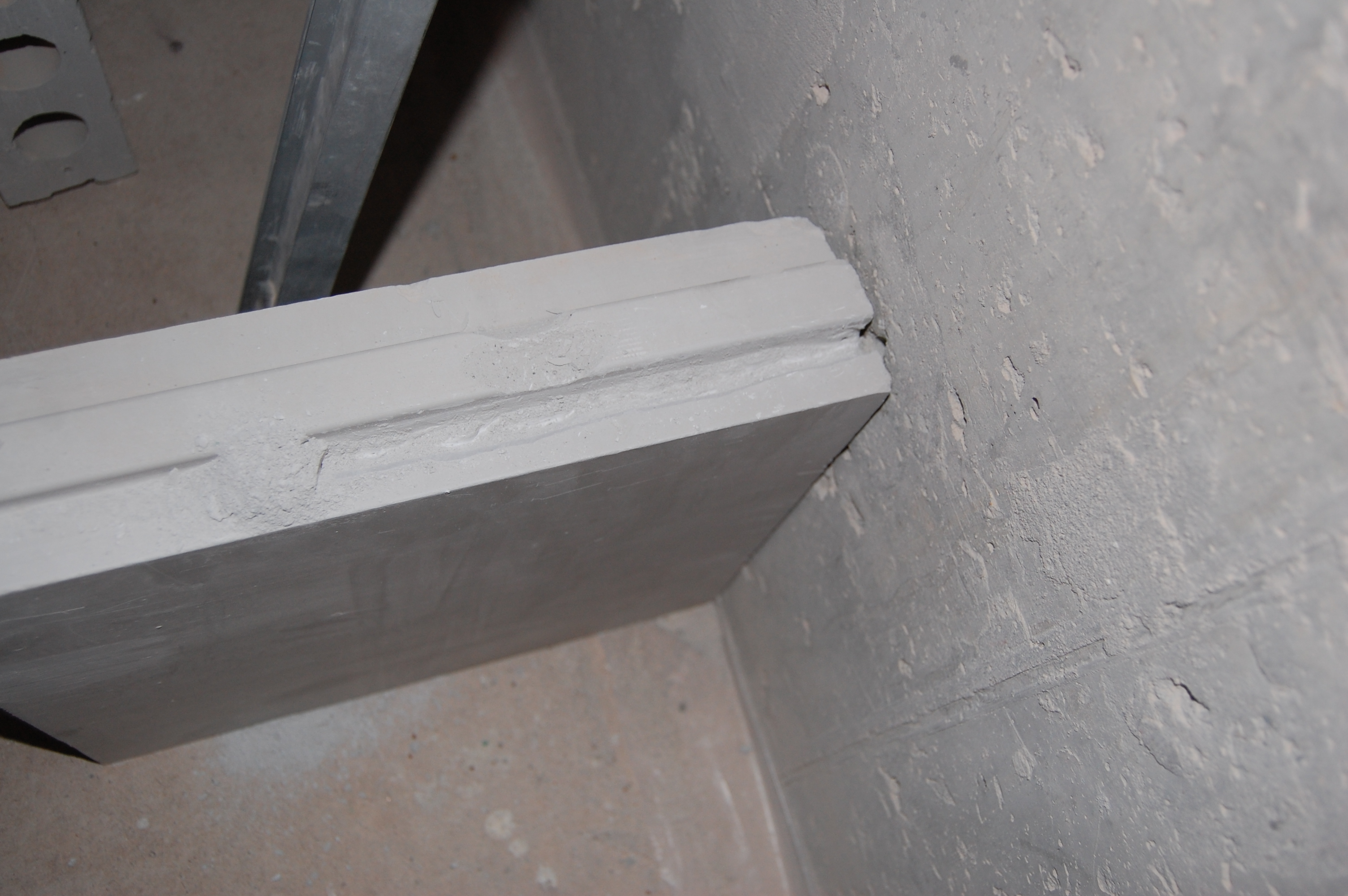 Сметаем крошку Вставляем в щель шпатель И наклоняем в бок Хрусть Подчищаем Могилка готова Когда придёт время ставить сверху блок, чтобы не разводить лишний раз клей, то опускаем короткую часть арматуры, которая уйдёт в стену, в клей ( здесь этого не делал ) и торжественно хороним Со второй стороны шипа повторяем всё в точности. |