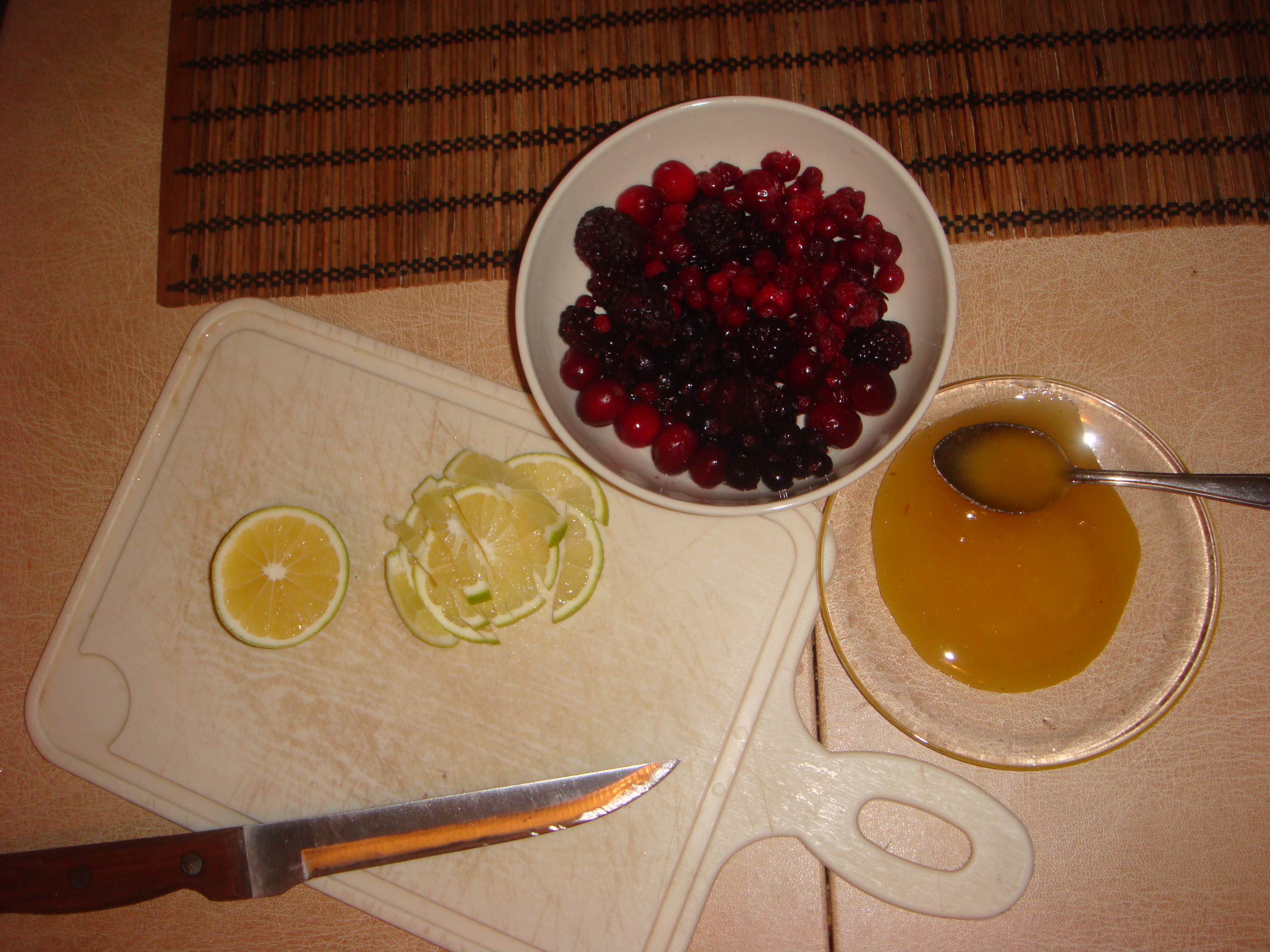 Не могу сказать, что это не особо кулинарный рецепт, просто более подходящей ветки в разделах нет, но ОЧЕНЬ ПОЛЕЗНЫЙ и вкусный, а главное мой авторский))! Очень актуально в данное время года! Лично меня эта смесь из ягод поставила на ноги за СУТКИ !!! Состав бочень простой, основные ингридиенты которого продаются в отделе заморозки любого более или менее крупного супермаркета. Способ приготовления (из расчета на сутки употребления для взрослого человека): разморозить ягоды - промыть - в равных долях смешать ( по 150гр) - добавить мед(200гр), чайную ложку корицы, нарезанный ломтиками лайм (1шт). Рекомендации по употреблению: каждый час по 2 чайные ложки смеси, но намного лучше будет разбавлять эти две чайные ложки смеси в стакане (200мл) теплой воды и так же выпивать раз в час. Пить на протяжении суток, ночью не менее 4 раз за ночь, если конечно не хотите болеть и желаете действенного эффекта за 24 часа. Состав Брусника, Ежевика, Смородина черная, мед натуральный(!), лайм, корица молотая. Цена вопроса для приготовления смеси на сутки употребления для одного человека: 180р. Не болейте!:doc: Желаю Всем Здоровья!! (IMG:style_emoticons/default/smile.gif) |