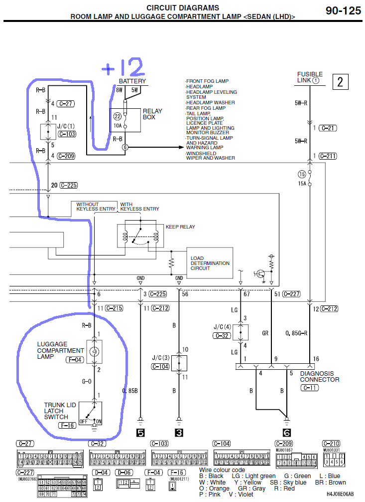 Начать можно прямо с концевика. Вот схема, нашел в теме с аналогичной проблемой: http://www.forum.lancer-club.ru/index.php?showtopic=185351 |