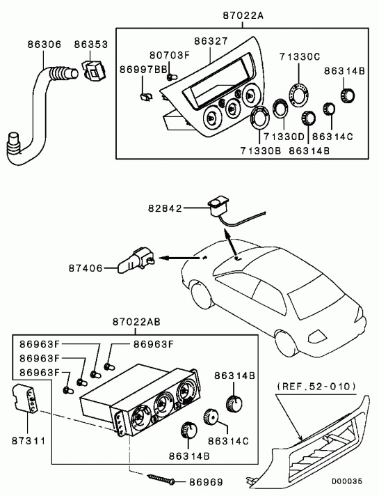 Вот, что получилось: В нише за магнитолой оставлен обрезанный до минимума родной блок управления печкой/кондеем с впаянными проводами от лампочек и кнопок: Вот, что пришлось приобрести: MR626796 рамка 2DIN фактурой как у торпедо MR626799 нижняя консоль 1DIN MR398544 блок HVAC от Pajero с разборки с разъемами с кусками проводов ~10 см. MR513323 support, A/C controller 2 шт. подставочки под HVAC MU000263 screw, heater control equip 4 шт. винты для крепления блока HVAC MR270029 WIRE,HEATER CONTROL EQUIP (Тросик управления температурой от Carisma длиной 610, требуется небольшая переделка) Магнитола устанавливается на оригинальное крепление для 2DIN устройства MR572900, MR572901 С этим креплением магнитола занимает необходимое положение по отношению к 2DIN рамке MN151278HA или MR626796 Глубину можно регулировать высверливанием дополнительных отверстий, точки для которых уже выштампованы. Бюджет, к сожалению, не вспомню, приобреталось все постепенно. Вырезать металл для пропуска тросика управлением температурой не пришлось, т.к. использовался длинный трос от Carisma Вот тут фотки внутренностей HVAC от Pajero Из переключателя/кнопки кондея HVAC от Pajero необходимо удалить металлический фиксатор, по дефолту кнопка фикисруется в замкнутом состоянии, без фиксатора только кратковременно замыкает и размыкает P.S. Пост отредактирован: крепление от Airtrek MN124401, MN124402, заменены на MR572900, MR572901 |