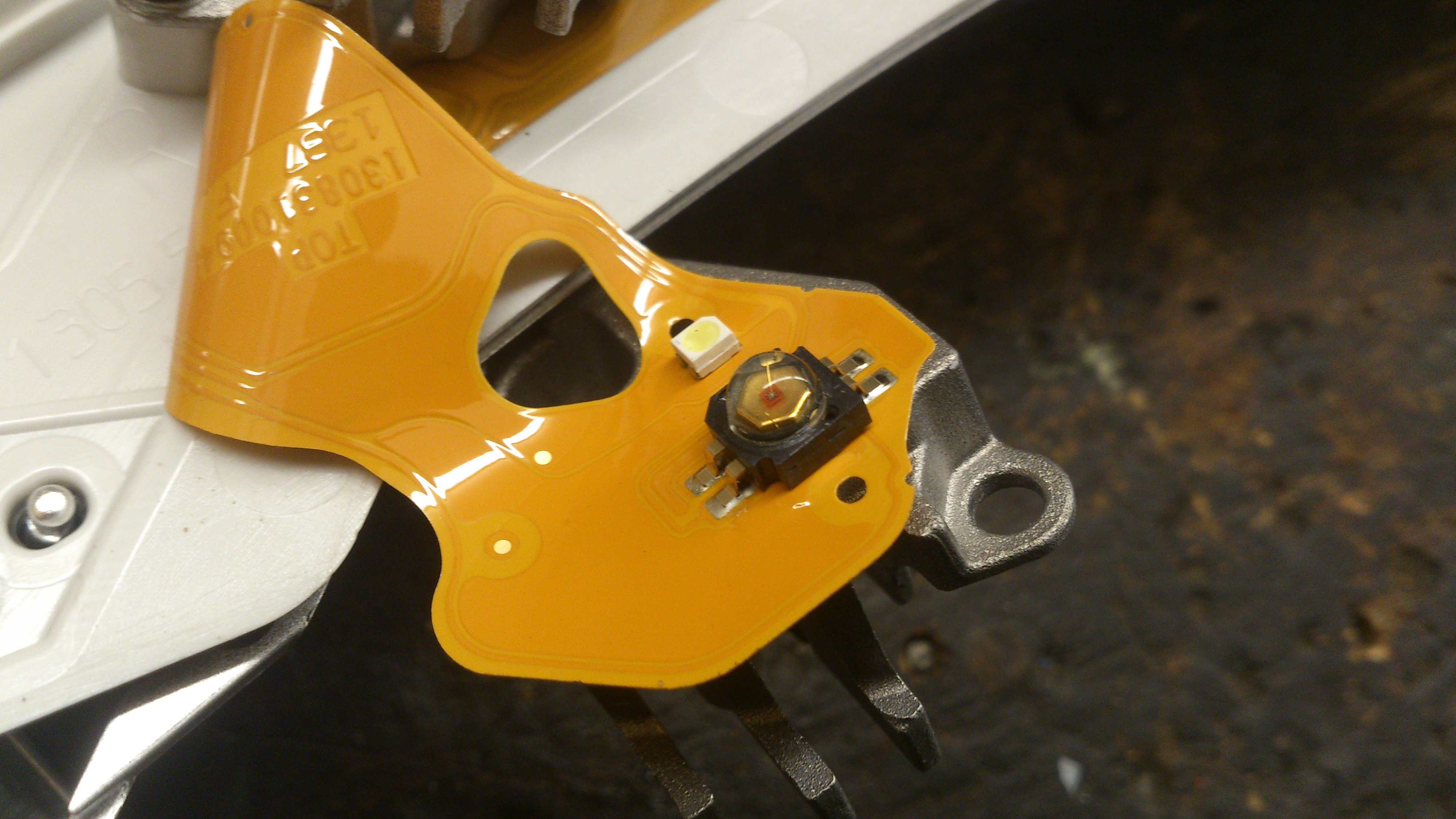батарея радиаторов, если открутить один из них то предстает такая картина, тот диодик что поменьше габарит, побольше поворотник оранжевый: