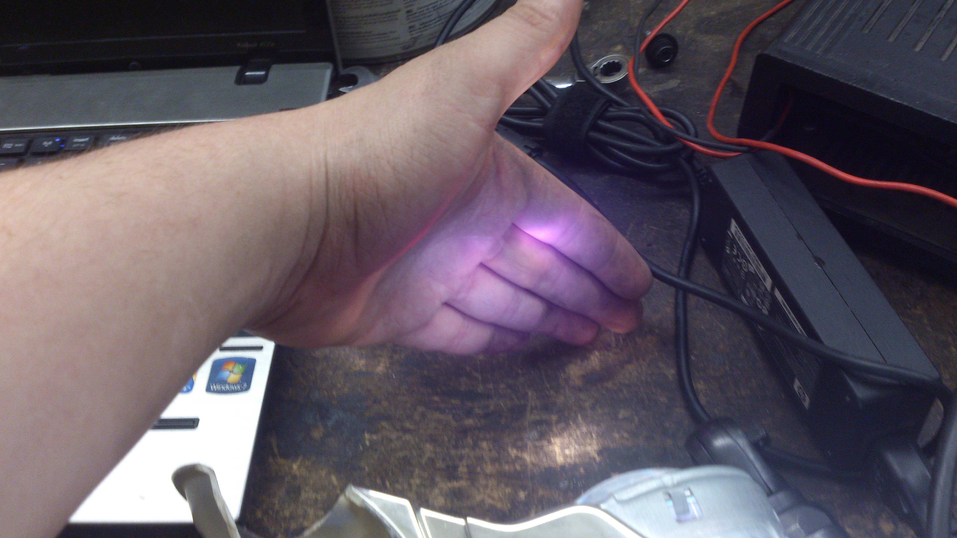 светит так, еще раз скажу что этот свет я не вижу глазами, только через камеру телефона: