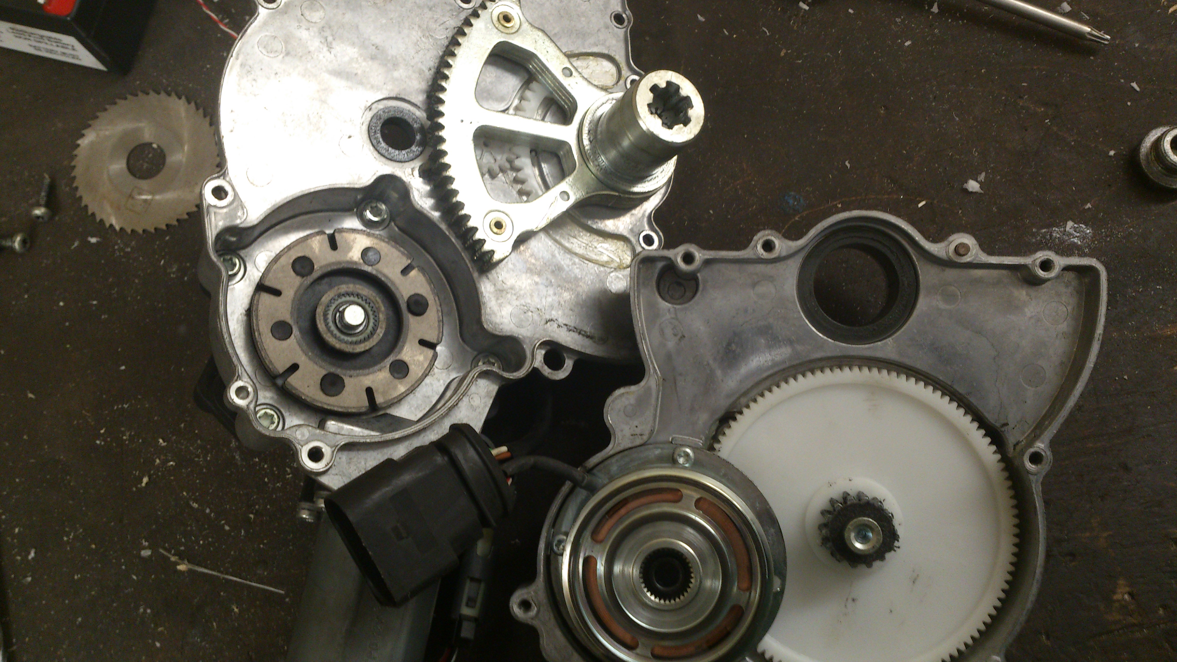 стоит в правом заднем крыле тянет крышку багажника за петлю, при том не исключает возможности открыть вручную, для этого там есть не помню как называется но принцип сцепления в компрессоре кондиционера.коментарии я думаю излишни, куча шестеренок, мотор, муфта сцепления, датчик холла: