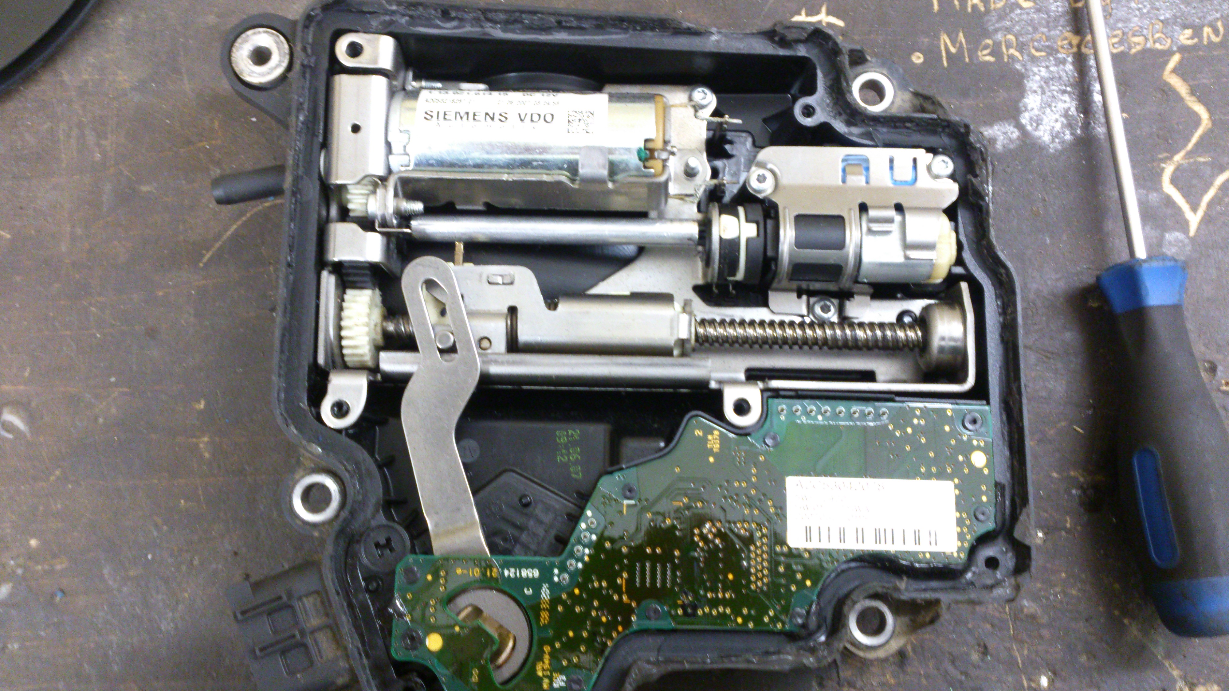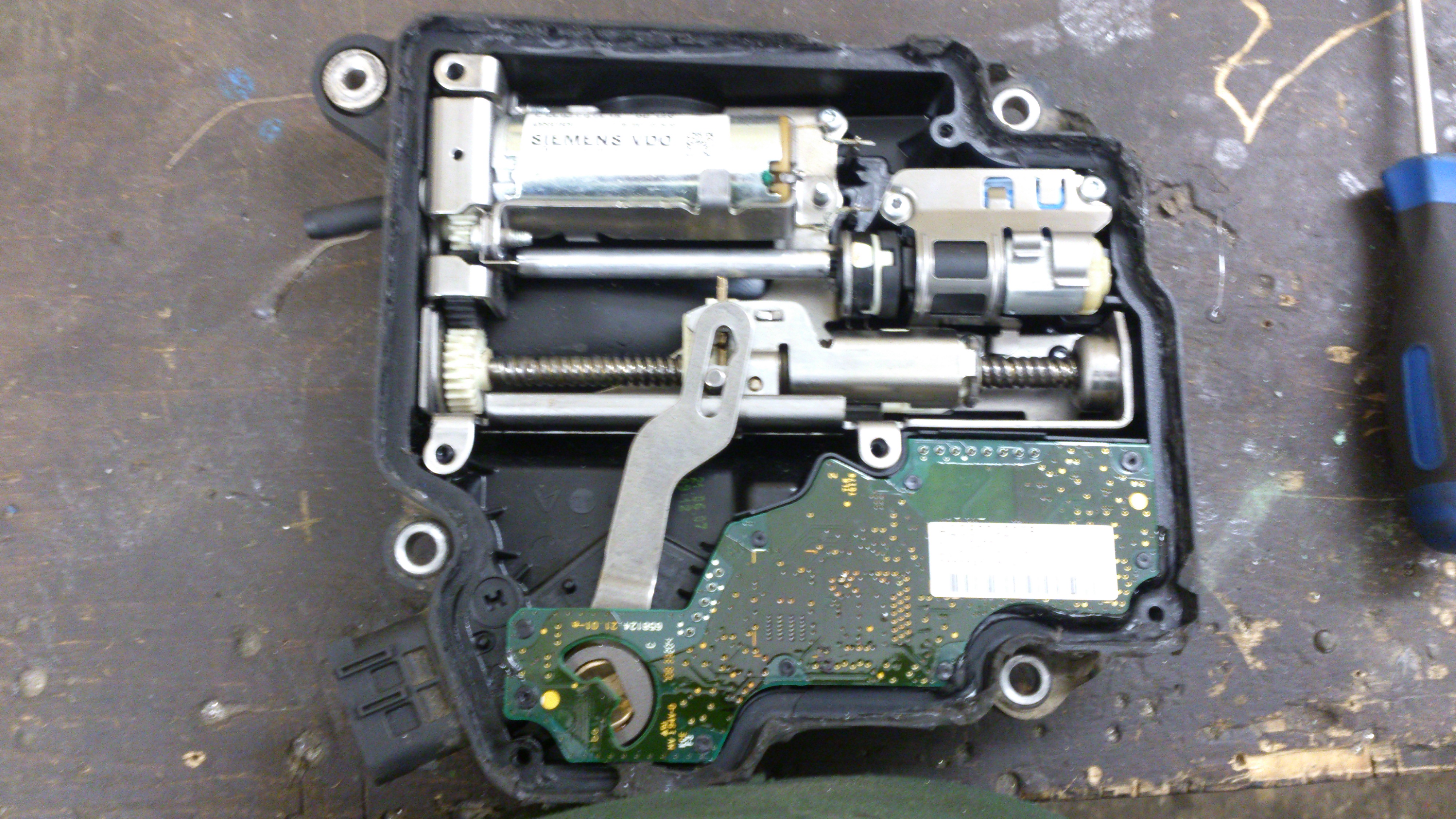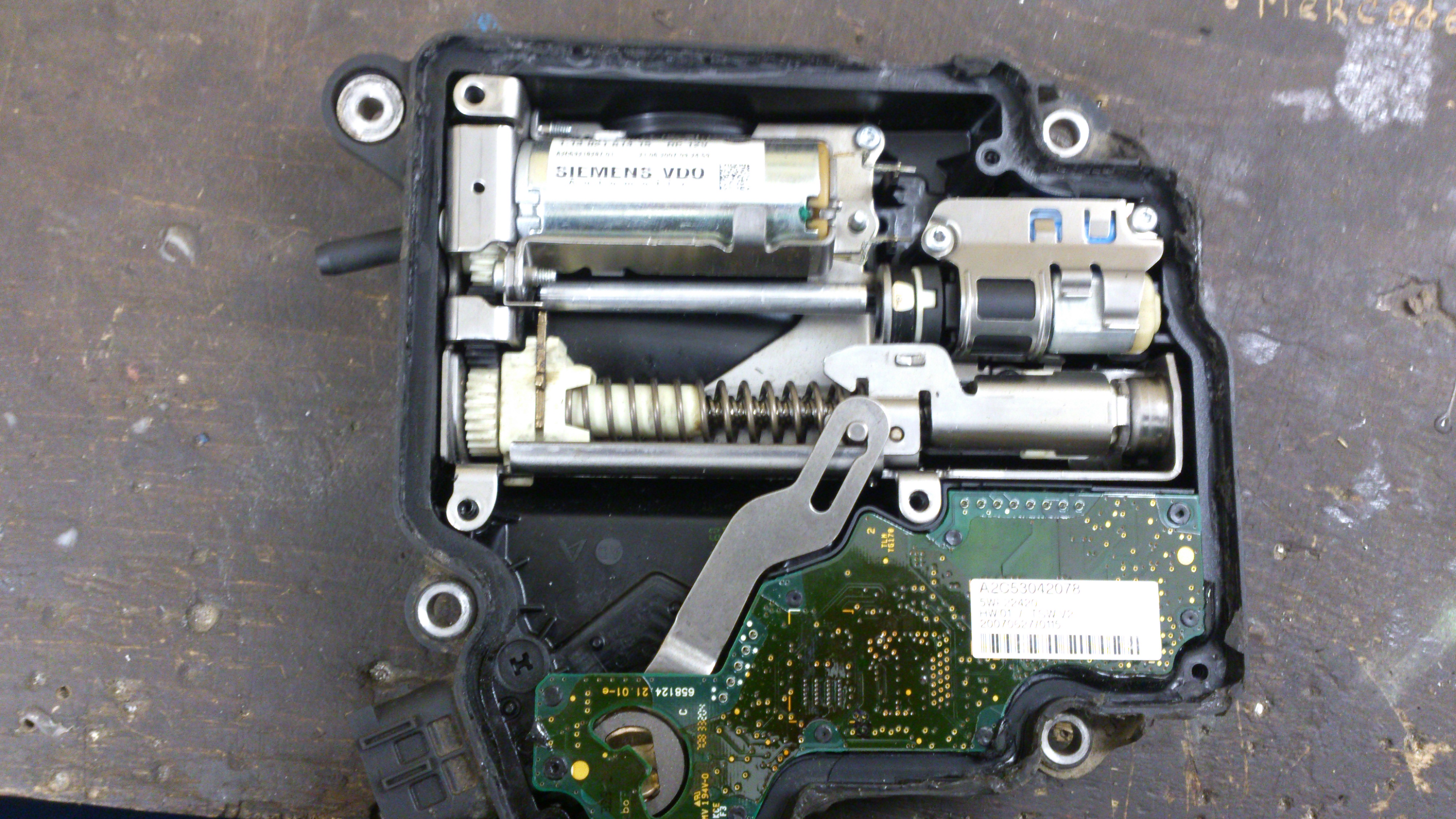 микросхема, шестеренки, два электромотора, ничего интересного, ну кроме того что эта хреновина привязывается к замку зажигания, ключу и блоку ДВС.