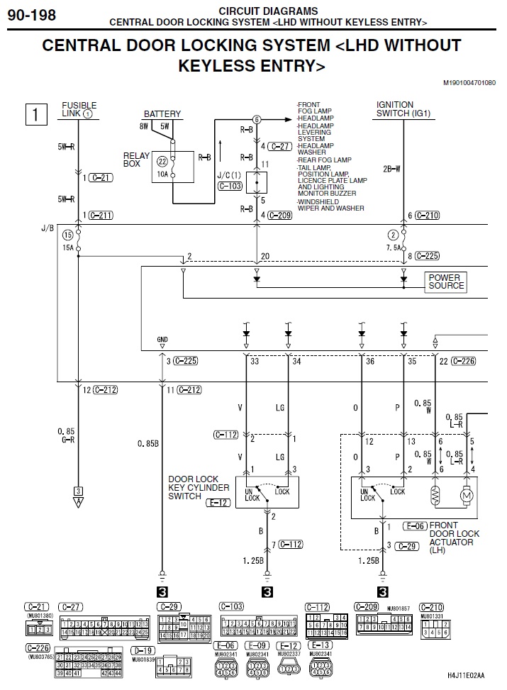 Цитата Для управления ЦЗ по массе используются пины 27-открыть и 28-закрыть. Не опечатка? Вот я смотрю мануал, страница 90-212. Там обозначены следующие пины: 35 (розовый) - закрыть ЦЗ, 36 (оранжевый) - открыть ЦЗ. По пину 29 все сходится. Пины 35 и 36 - это управление с водительского замка, а писал про управление с пассажирской личинки. Если делать управление с водительского замка, то придется использовать перекидное реле (встроенное или внешнее) и разрезать эти два провода, а к пассажирской личинке достаточно подключиться параллельно, т.к. в нормальном состоянии обе линии управления "оторваны" от массы. Нужно в машине скинуть 226-й разъем и проверить наличие подводящих проводов к 27 и 28 пинам. Дмитрий, не нашел в мануале упоминания про пины 27 и 28 разъема С-226!!! По-моему вы ошибаетесь. Смотрите. 1. Схема управления ЦЗ ланса 2.Видны два разъема личинок дверей: Е-06 (водительская дверь) и Е-12 (пассажирская дверь) 3. Провода от пассажирской личинки приходят на все тот же разъем С-226, но пины 33 и 34. Это кстати подтверждает расцветка проводов , в приводимых мною ранее табличках. 4. На схеме видно, что механизм управления одинаковый у личинок. Я так понимаю, что без реле не обойтись. П.С. блин, раньше скачал мануал из Интернета и пользовался им, а он отличается от того, который выложен на сайте у Дмитрия - количество страниц и схемы немного отличаются (IMG:style_emoticons/default/sad.gif) |