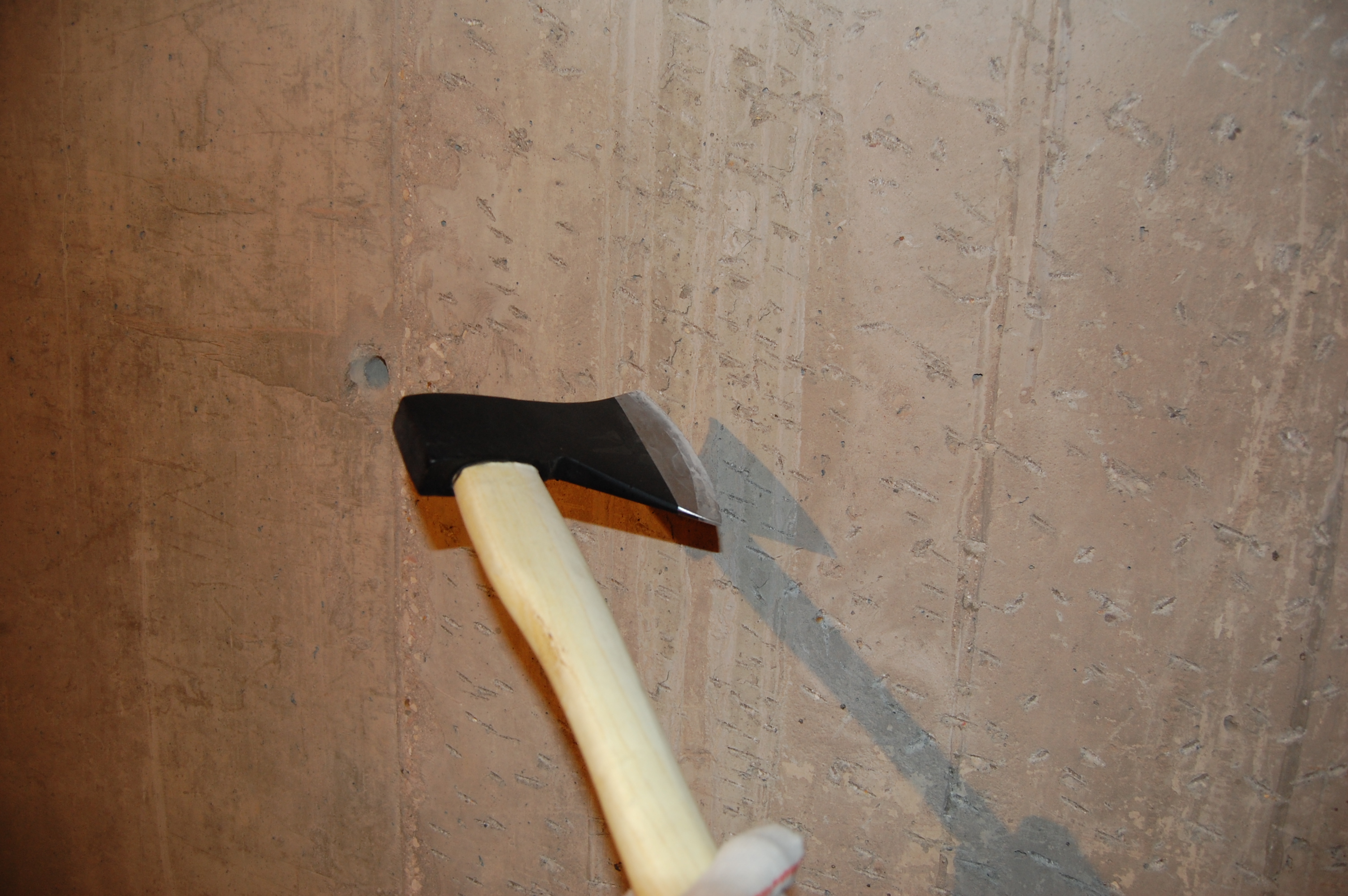 Особенность монолитных стен С монолитом в общем-то всё. Стоит упомянуть пожалуй только единожды увиденное мной. А была это абсолютно глянцевая, аж блестящая и лоснящаяся монолитная стена. Я конечно охотно верю в специальные грунтовки для сцепления штукатурки и бетонной поверхности, так и называемые с небольшими вариациями "Бетон-Контакт". И даже видел ролик где "Бетон-контакт" на стекло накапывали, а потом отодрать не могли. Только... Только во многих роликах много лукавства. "Бетон-Контакт" действительно на стекле лучше, чем на бетоне держится. Причиной тому и пыль, которую как не мой бетон всё равно не смоешь. И поверхность бетона более хрупкая... Поэтому по старинке, когда о "Бетон-контактах" ещё и не слыхивали, взялся наносить насечки на стену. Для этого действия существует специальный инструмент: 1) Самое удобное - это бучарда. Молоток такой тяжёлый, у которого вместо плоскости для забивания - шипы. Собственно домашняя колотушка для отбивания мяса - его копия. 2) Троянка или зубчатка. Зубило с рабочей поверхностью разделённой на несколько шипов. ![]() 3) В принципе можно и шлямбуром воспользоваться. Это трубка у которой рабочая кромка тоже поделена на несколько шипов. Назначение её правда отверстия в каменных стенах пробивать. Понятное дело, что у меня ничего подобного не оказалось. И купить столь специфический инструмент - куда-то ехать. Да и денег он стоит. Поэтому вспомнил старый дедовский способ "рубить стену". Собственно в слове "рубить" всё и сказано. Топор из Леруа за пару сотен. Ритм 20 ударов в минуту. Из недедовского только очки и противопыльная маска на лицо. И полтора часа времени с пятиминутным перекуром |