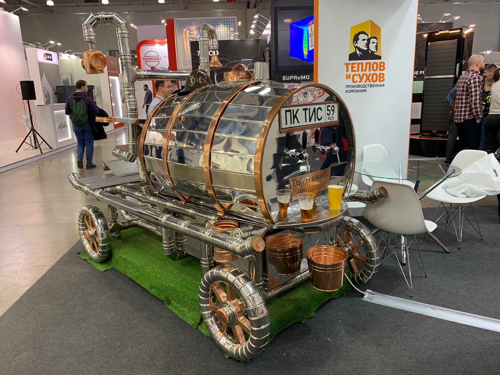 Удалось уговорить нескольких друзей, кто смог, приехал. Также пригласил новых адептов РЕХАУ для записи на обучение. В итоге совместили полезное с приятным, получилась встреча с посещением выставки. Побродили, посмотрели. Так и не определили: хром или нержавейка ? (IMG:style_emoticons/default/rolleyes.gif) Присмотрел ключик со скидкой : Из новинок понравилась разработка в виде формируемой по месту монтажа уплотнительной прокладки. Из однокомпонентной массы разминается и формируется блин прокладки, острым предметом (ручка, карандаш) протыкается и отформовывается центр. Непонятна физика процесса, но в спокойном состоянии немного твердеет и используется по назначению. Разработка перспективная, в продаже еще нет, как появится, - сообщат на почту. В дежурном чемодане не помешает! Ну и у Ostendorf понравились некоторые новинки. Параллельно с Акватерм проходила выставка AIRVent 2023 ( вентиляция, кондиционирование и т.п.) , встретился вот такой кондиционер: Сотрудники стенда уверяли " не бит, не крашен"! (IMG:style_emoticons/default/biggrin.gif) Увидев бочку на телеге Всё стало ясно, когда подошли к обратной стороне бочки: Оказывается, это оборудование для отдыха монтажников ! Намёк поняли, и выдвинулись к стенду РЕХАУ, где с удовольствием ! отобедали! На этом ,собственно, посещение выставки и закончилось. Р.С. Рехау не поскупилось, и за вновь приведенных на обучение адептов выдали еще две пары носков! (IMG:style_emoticons/default/smile.gif) Ну и уже уходя забрал со стенда Турецкой компании забронированные в среду ТЭНы и регуляторы. До встречи на MosBuild 2023 ! |