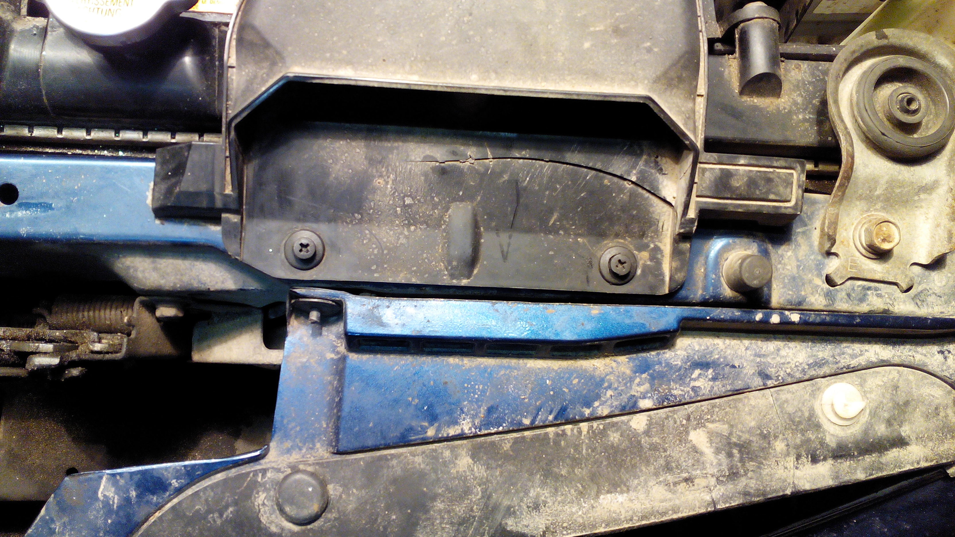 Пробовал залить герметик, дорогой, не помогло... Пришлось менять. Что и было проделано в нашем маленьком тесном, но хорошо укомплектованном гараже. Сразу прошу не пинать за качество фото. Как и большинство, не держу в гараже зеркального цифровика с хорошей оптикой, снимаю на телефон. Кроме того, это мой ПЕРВЫЙ фотоотчет (IMG:style_emoticons/default/smile.gif) Итак, для замены радиатора системы охлаждения нам понадобятся следующие инструменты: 1. Маленькая трещотка с коротким удлинителем 2. Головка на 10 3. Крестовая отвертка 4. Плоскогубцы или щипцы 5. Болты (заглушки) для контура охлаждения масла АКПП 5а. Можно заменить хирургическими зажимами предыдущий пункт. 6. Герметик (?) 7. Кофе/чай/пиво. 8. Правильная музыка (IMG:style_emoticons/default/biggrin.gif) Итак, приступим. Поле нашей деятельности. Крестовой отверткой выкручиваем сердечники пистонов воздухозаборника Вынимаем пистоны Трещина на воздухозаборнике позже попутно будет запаяна (IMG:style_emoticons/default/smile.gif) Снимаем воздухозаборник Отсоединяем большой разъем от блока управления вентиляторами. Он находится на нижней стороне блока Снимаем с радиатора шланг расширительного бачка, вынимаем бачок вверх. Не наклонять сильно, в нем антифриз. По крайней мере, должен быть (IMG:style_emoticons/default/smile.gif) Откручиваем 3 самореза крепления блока вентиляторов к радиатору. Сжимая щипцами, ослабляем хомут, не отпуская, сдвигаем его в сторону двигателя, освобождая верхний штуцер радиатора. Снимаем верхний патрубок со штуцера радиатора. Отгибаем снятый конец патрубка в сторону двигателя, вынимаем блок вентиляторов. Теперь открылся доступ к сливному крану радиатора. Ставим под него емкость для слива, Отворачиваем кран, сливаем антифриз. Не забудьте открыть пробку радиатора. Снимаем нижний патрубок радиатора с термостата. Это удобнее, чем плюхаться с хомутом на нижнем штуцере радиатора. Патрубок снят. Отсоединяем контур охлаждения масла АКПП На еще стоящем радиаторе удобнее снять шланги со штуцеров самой АКПП, чем со штуцеров радиатора. Глушим снятые шланги болтами, либо пережимаем хирургическими зажимами. Осталось снять 2 верхних демпферных крепления радиатора Выкручиваем болты. Здесь нам пришлось использовать большую трещотку, так как болты, несколько, закисли. Снимаем крепления. Вынимаем радиатор. Вот он, красавец! Забит грязью по самые... Впрочем, ему уже все равно... На верстаке снимаем нижний патрубок и шланги контура охлаждения масла АКПП Аккуратно переставляем все это хозяйство на новый радиатор. Ставим, попадая в пазы выступами на радиаторе новый радиатор на место, присоединяем шланги контура охлаждения масла АКПП на место. Для предотвращения повторного закисания болтов, мы смазали резьбу смазкой. Прикручиваем верхние крепления радиатора. Наносим герметик на штуцер радиатора и термостата. Надеваем патрубок, фиксируем хомутом Вставляем блок вентиляторов, прикручиваем к радиатору. На новом радиаторе в гнездах стояли гайки, поэтому саморезы пришлось заменить на болты Ставим на место расширительный бачок, присоединяем его шланг к радиатору. Открываем кран отопителя (температура на максимум), На автомобилях с климат-контролем перед этим нужно включить зажигание. Наливаем в новый радиатор антифриз. Рекомендую наливать через воронку очень тонкой струйкой, чтоб минимизировать образование воздушных пробок в системе охлаждения. Закр