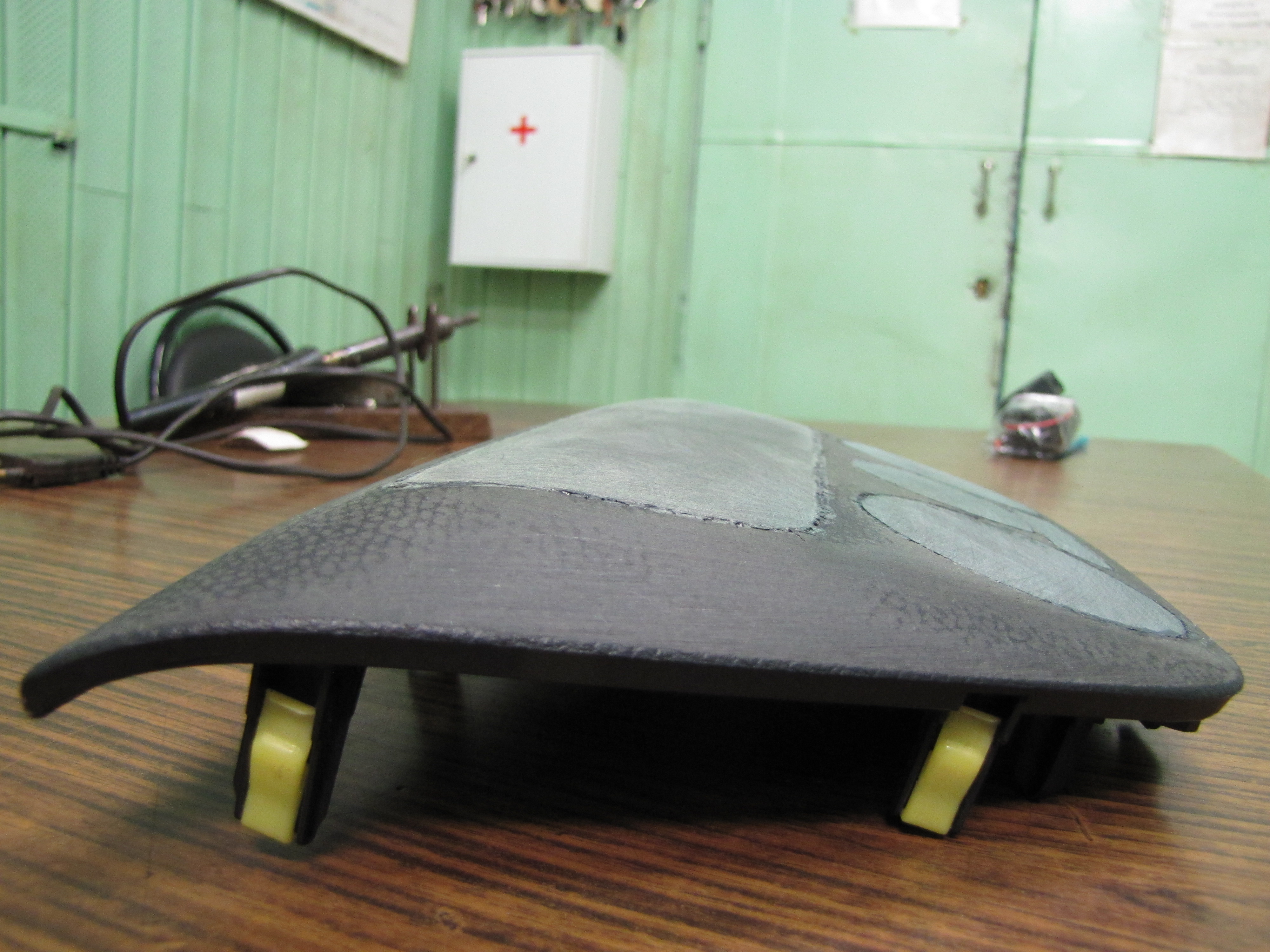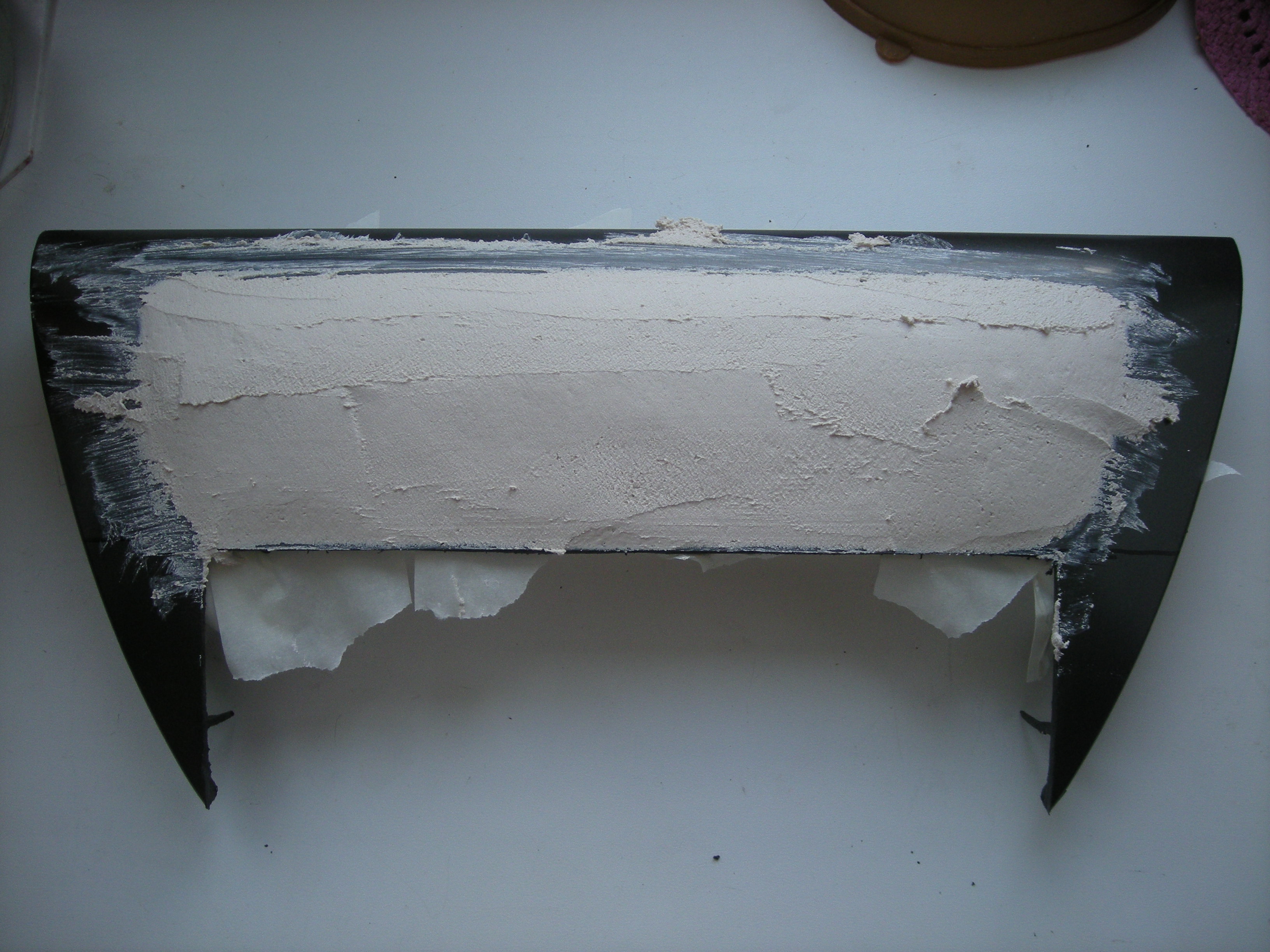 Залил гипсом и отшлифовал. Разогрел феном полистирол и изогнул по форме гипса.Потом все выпилил и склеил дихлорэтаном. пока получилось так. |