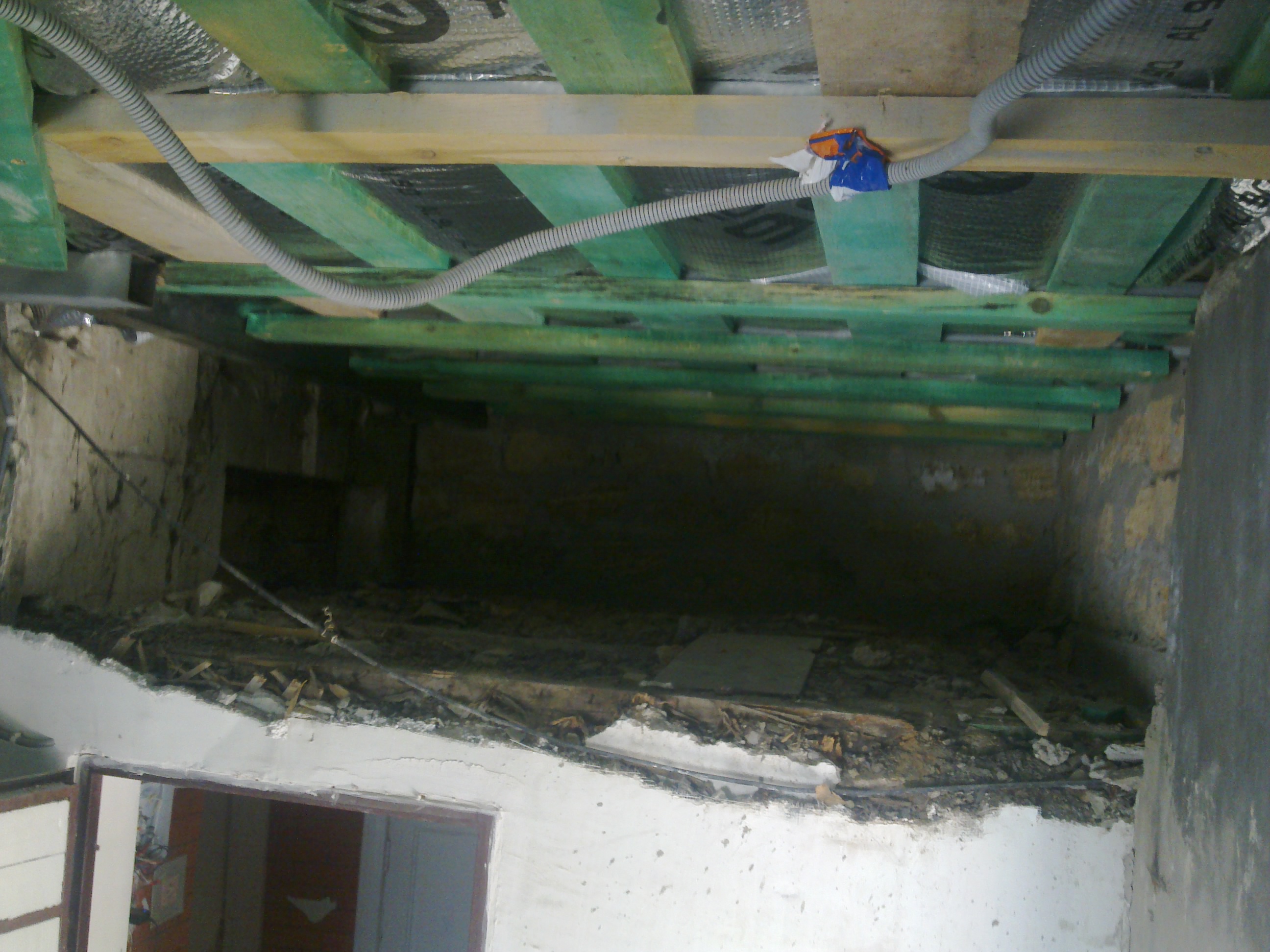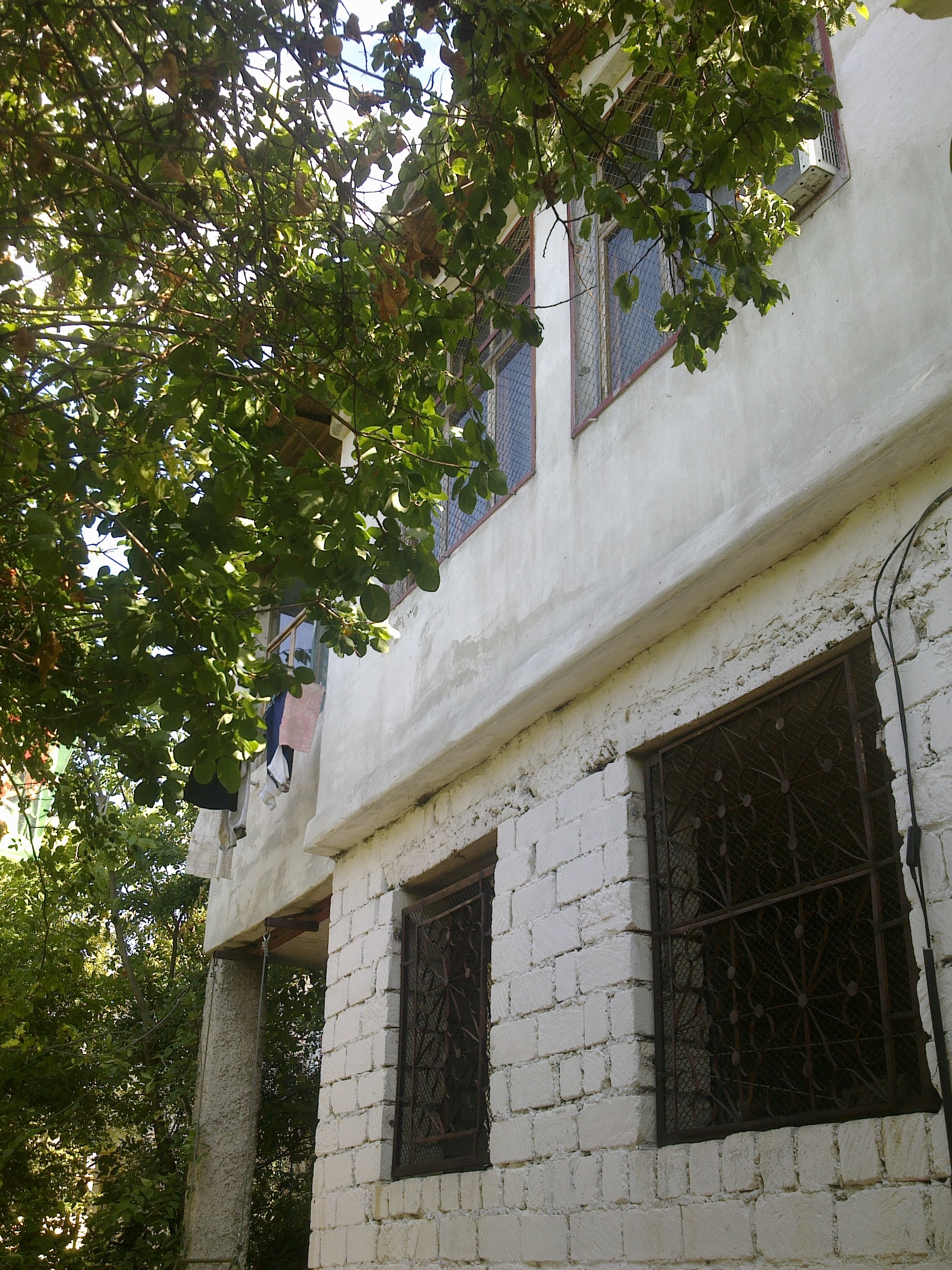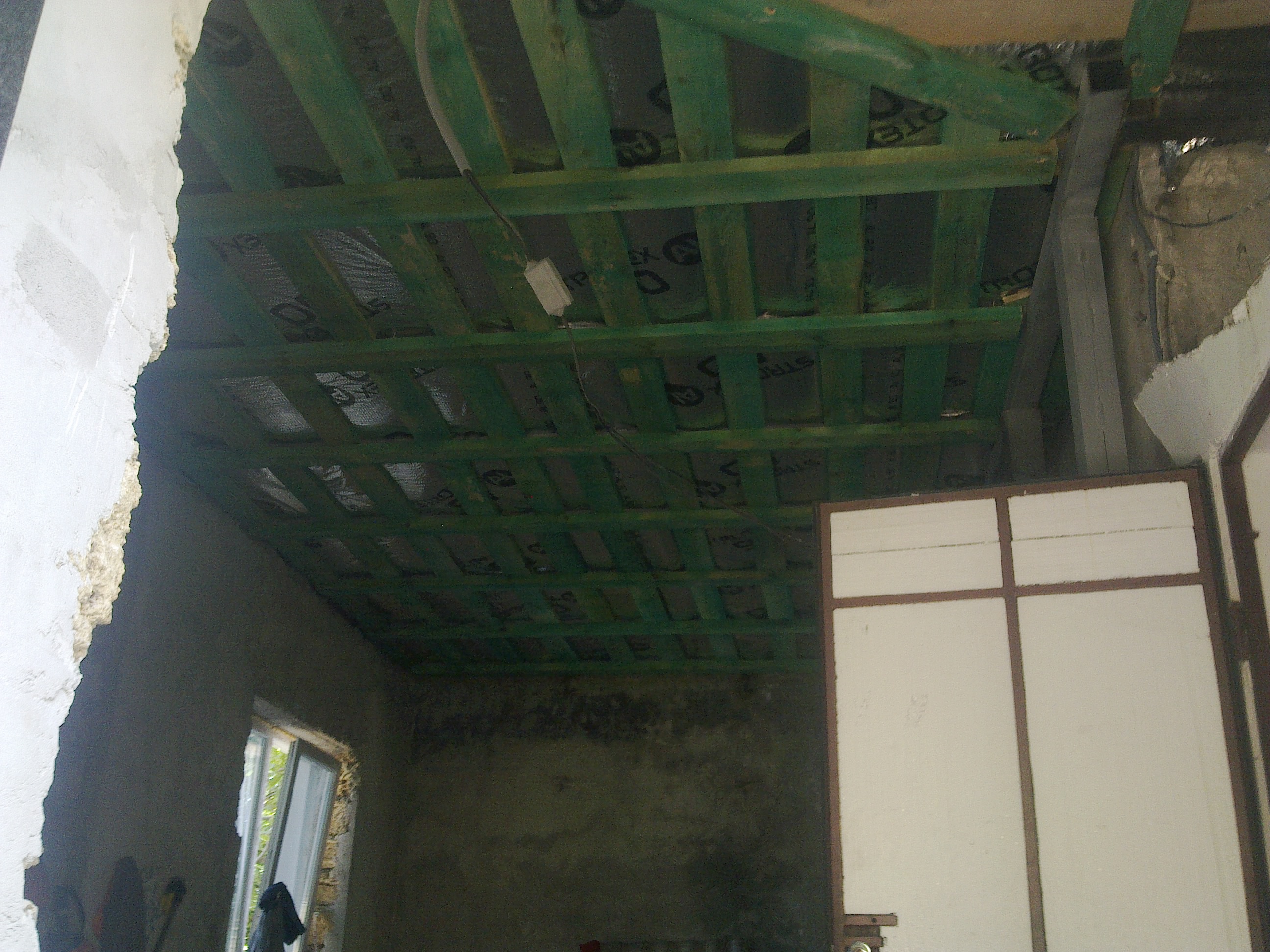 Еще в июне, в первый приезд, знакомые вывели на ребят по серьезному занимающиеся строительством в свободное от работы время (IMG:style_emoticons/default/biggrin.gif) . За время моего отсутствия они по уговору выполнили те работы, которые крайне неудобно выполнять одному. К моему текущему приезду парни сняли временную крышу с пристройки, накрыли ее постоянными "на века" (IMG:style_emoticons/default/smile.gif) фермами, заменили уже ставший "хрустким" шифер, подняли стены телепортера эМ-Жо до уровня пристройки. А также проложили крышу термоизоляцией Крыша изнутри Поднятая крыша над телепортером изнутри. Справа хорошо видно на сколько подняты стены и то, что для их возведения использован местный ракушечник. А слева видно, что дверь, в пристроенный в середине 50-х коридор с удобствами, прорублена на месте оконного проема. А уже из коридора сделан отдельный выход для угловой квартиры на улицу. Так что тюнинг не я начал (IMG:style_emoticons/default/laugh.gif) Крыша пристройки сверху |