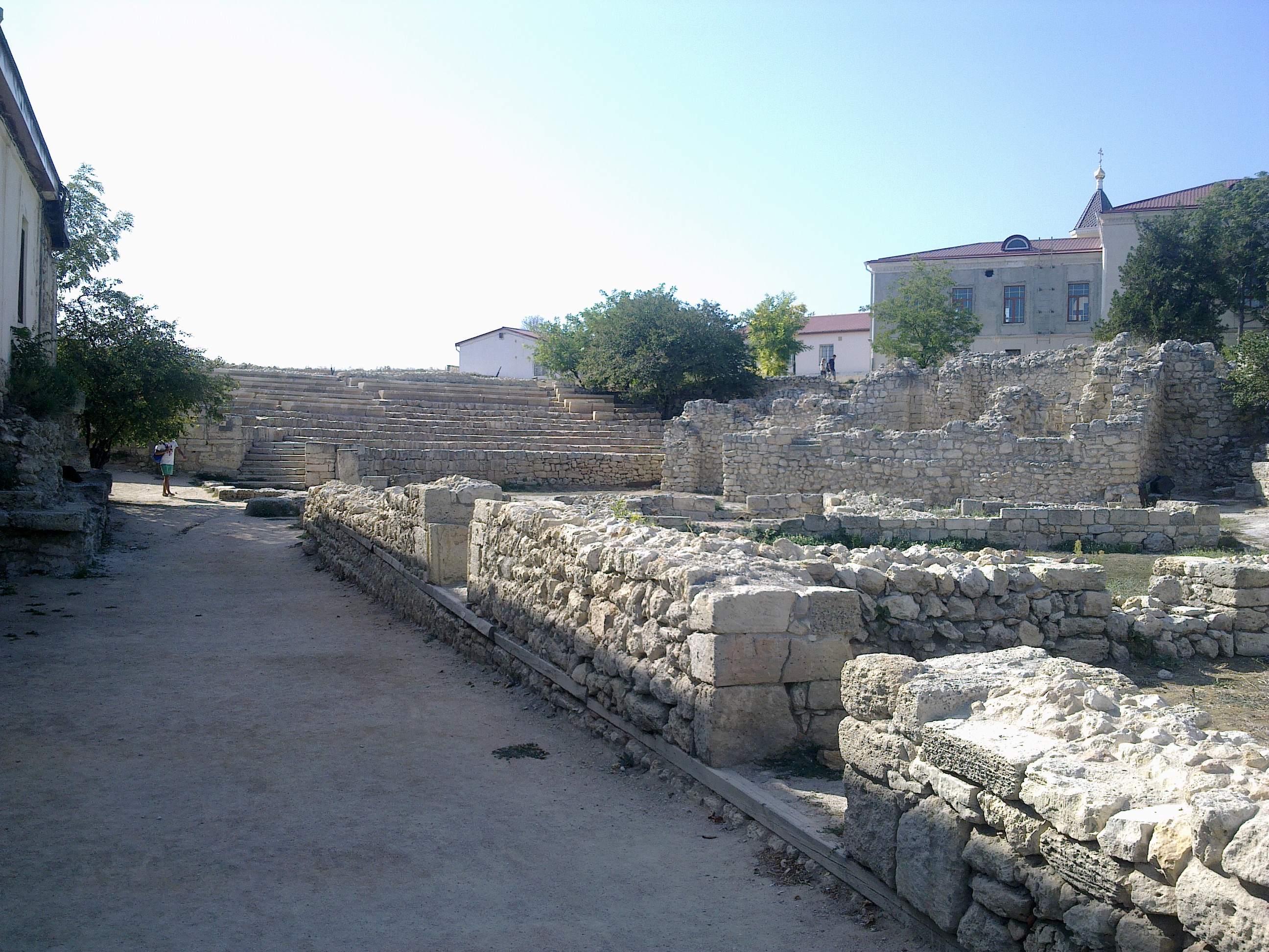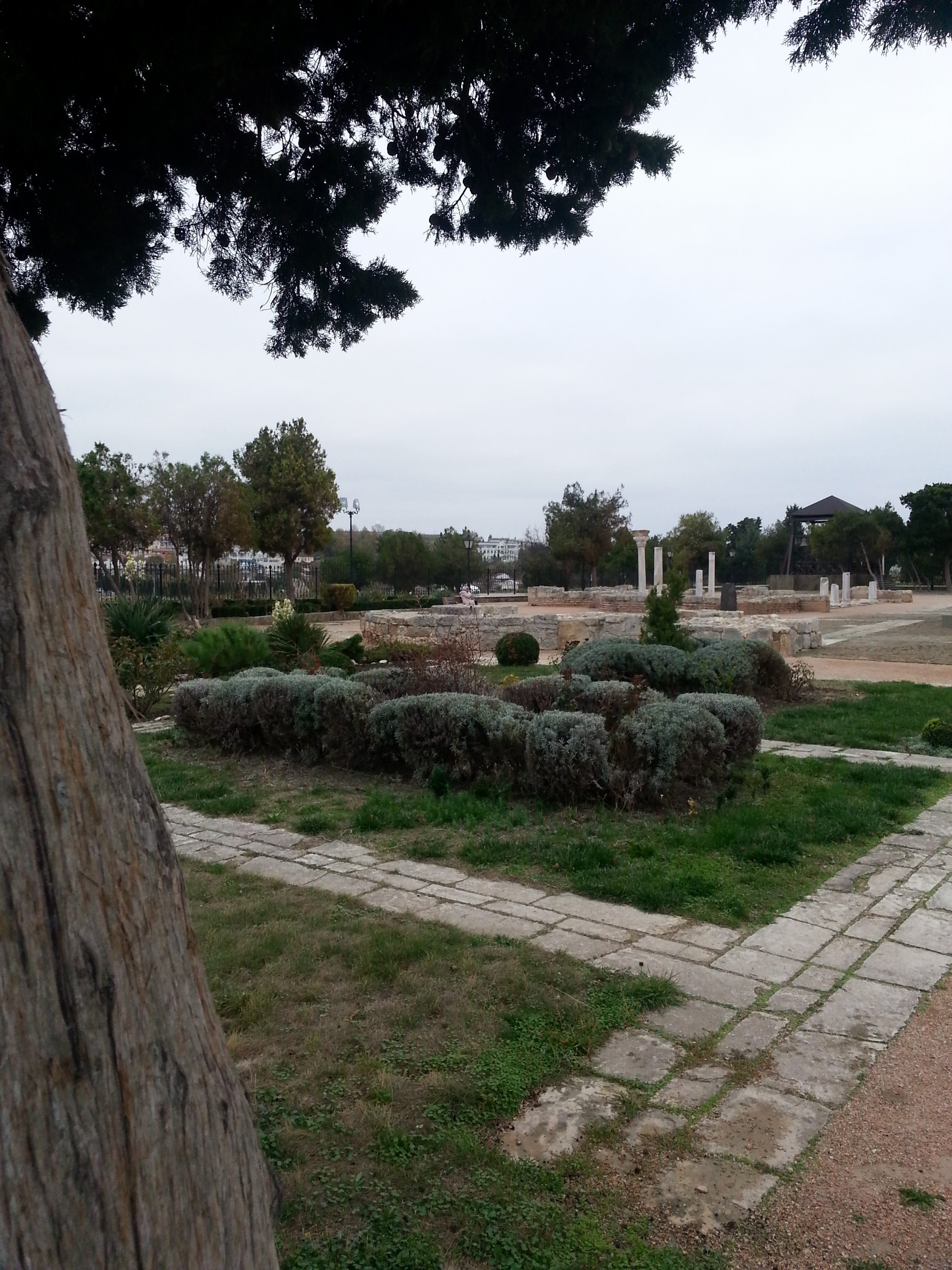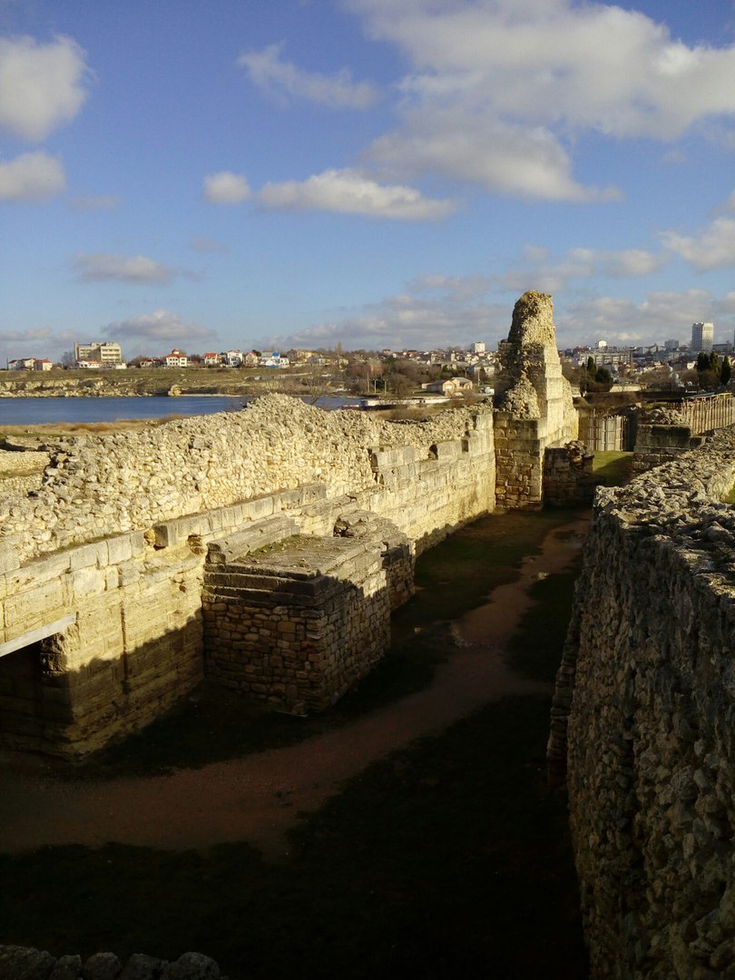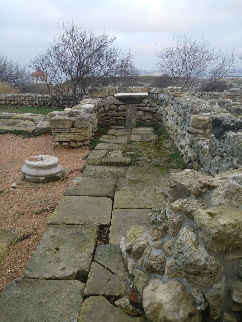 Вот так выглядит одна из главных улиц Якобы, когда ещё в прошлом или позапрошлом веке, древнегреческий Херсонес начали откапывать, акрополь выглядел так Я его впервые застал уже таким Вот более общий вид, среди прочих раскопок Около храма, который возвышается над раскопками, есть ещё остатки более мелкого акрополя Там же рядом есть музей под открытым небом в котором хранятся всякие амфоры, черепки, остатки мозаики и прочее А вот такой мозаикой выложены некоторые дорожки музея |