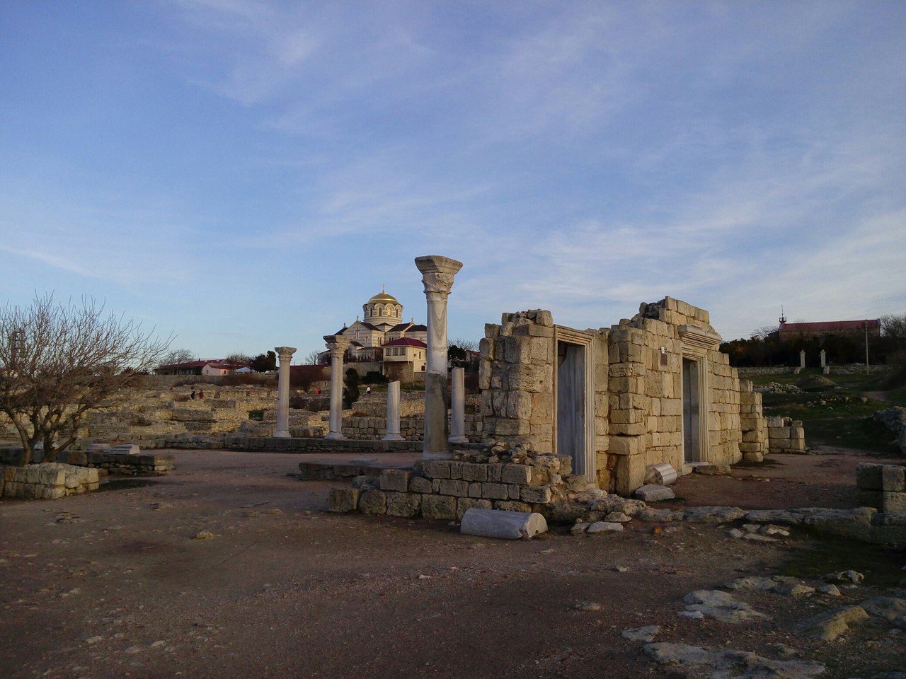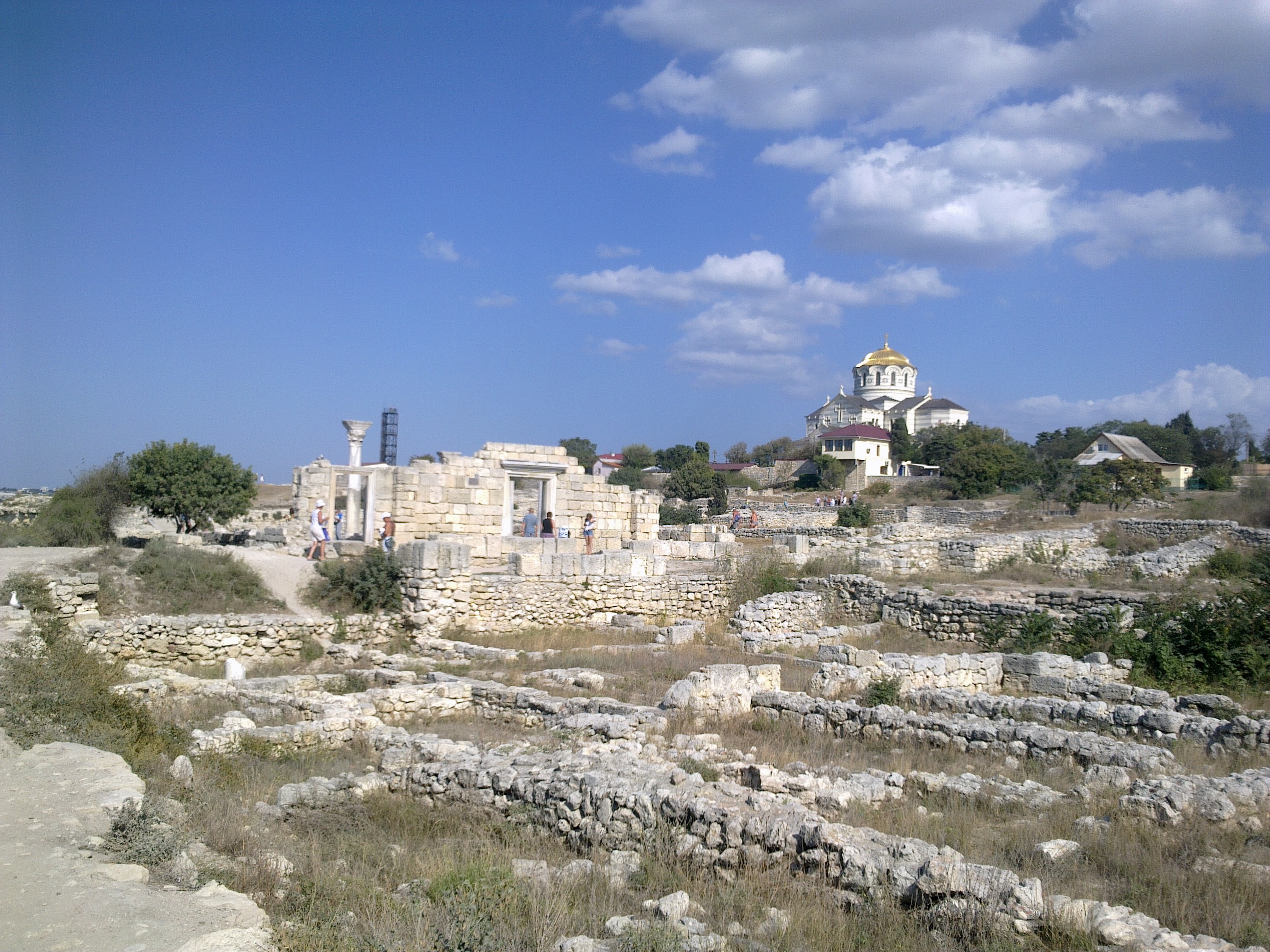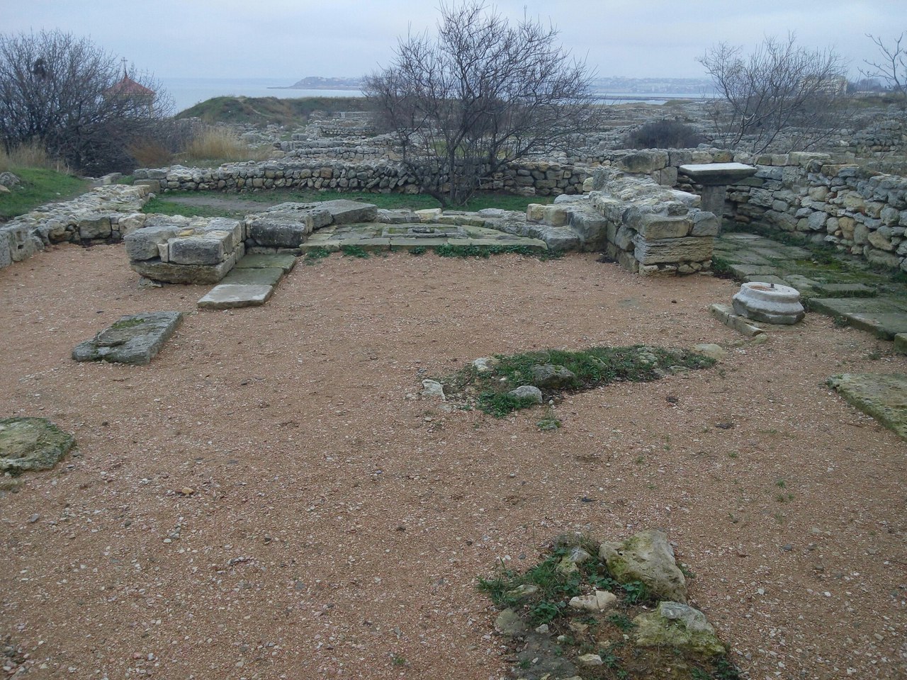 Вот так выглядит одна из главных улиц Якобы, когда ещё в прошлом или позапрошлом веке, древнегреческий Херсонес начали откапывать, акрополь выглядел так Я его впервые застал уже таким Вот более общий вид, среди прочих раскопок Около храма, который возвышается над раскопками, есть ещё остатки более мелкого акрополя Там же рядом есть музей под открытым небом в котором хранятся всякие амфоры, черепки, остатки мозаики и прочее А вот такой мозаикой выложены некоторые дорожки музея |
