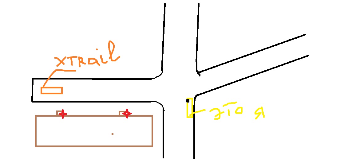По расположению машины и удару очевидно, что ударило авто, которое выезжало из моего двора. Это факт. По камерам видно, что в это время выезжал только лишь ниссан икстрейл темного цвета с широкими рейлингами (фарами), на камере есть также лицо водителя, т.к. он входил в подъезд, а чуть позже вышел с женщиной и детьми. Вот этот подбитый ниссан обнаружил сегодня как раз у подъезда, в который заходил/выходил водитель икстрейла. Двор у нас всего на один дом, два подъезда, тупиковый, т.е. все "свои". Схему двора с расположением авто нарисовать попробую, но не факт, что получится. |