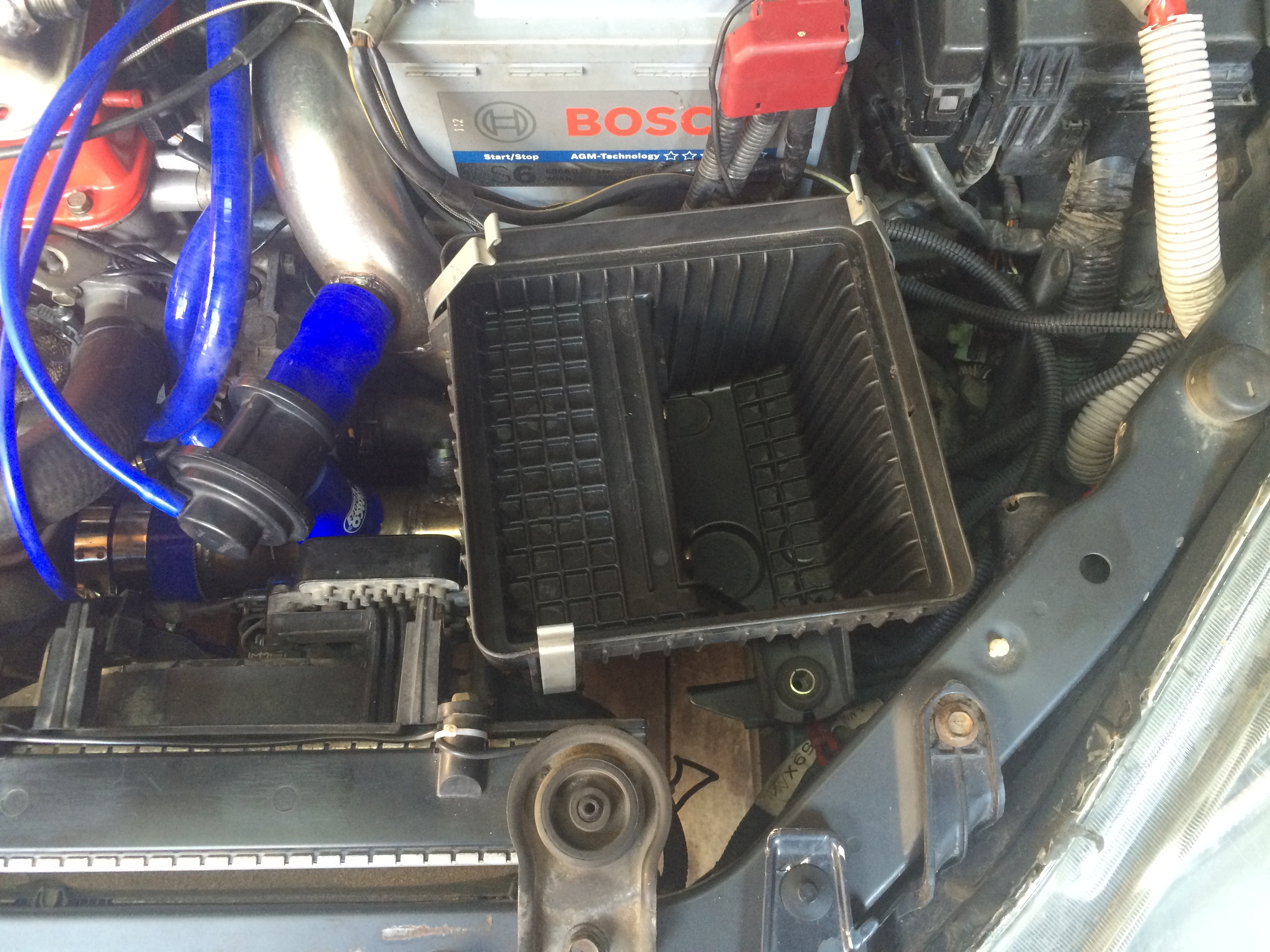 Очередная доработка за мастером с подпольной кликухой "золотые руки". Было до моего вмешательства: Лепить, так лепить. Видимо такой девиз у СГ. Еще когда первый раз снимал короб, я написал мастеру "мол что за хрень Почему кронштейн на саморезах и короб стоит криво?". Ответ "типа по-другому нельзя было поставить". Но я то знаю, что все ставится штатно и ровно как с завода. Доказательство тому вот - https://www.drive2.ru/l/5739666/ Еще год назад Алексей Rcus наглядно показал, как ставится кронштейн в штатные отверстия. Очередной раз снимал короб воздушного фильтра, заодно решил поствить кронштейн по уму. Заклепочник под резьбовые заклепки имеется, но вот самых заклепок найти не удалось, придется заказывать. Решил зафиксировать на один болт, пока едут заклепки. И так держится все достаточно крепко. Пока воздухозаборник зафиксирован только на одну клипсу, т.к. короб необходимо чуток повернуть, чтобы встал окончательно ровно. Пока он упирается в косу, которая проходится между коробом и АКБ. На морозе с проводкой работать плохо, отложил до тепла. |