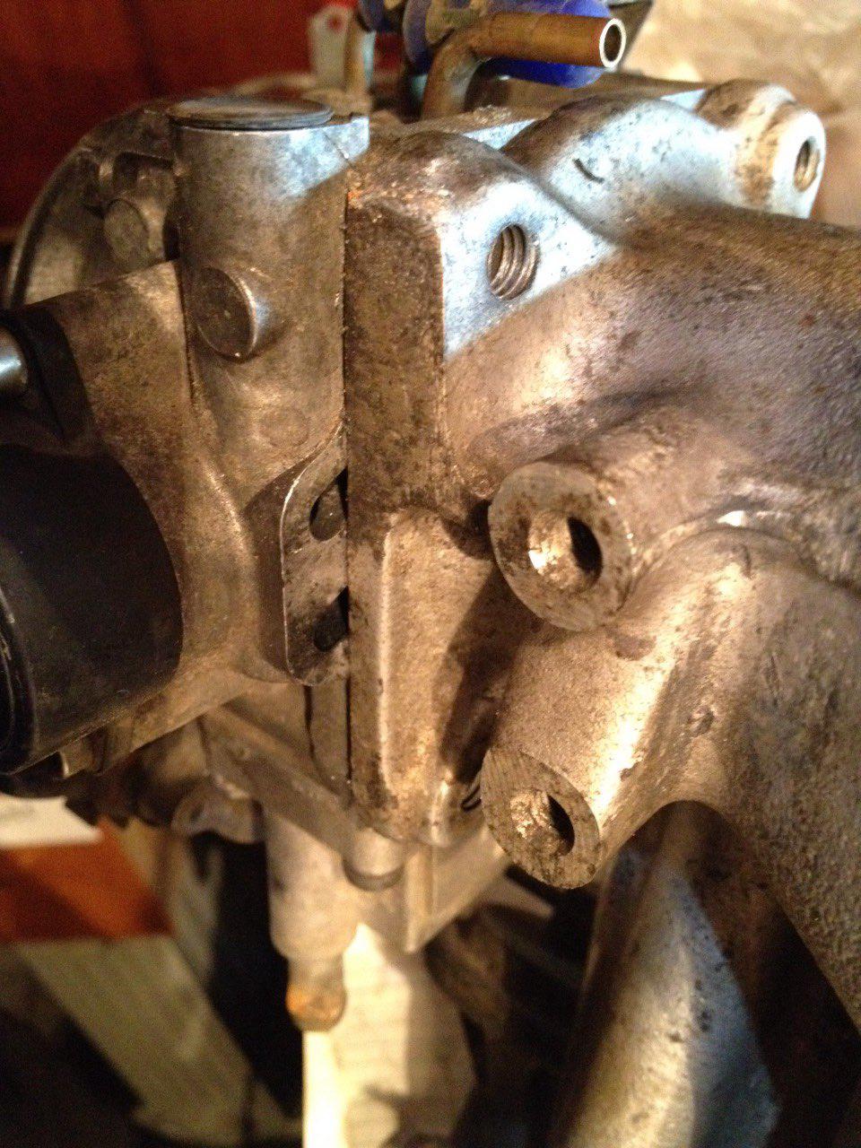 Вот так выглядит дроссель на коллекторе без прокладки. А вот так было установлено! Что это значит думаю все здесь понимают. Непонятно как и зачем так делать? Разбирая, мотор проекта мАСТЕРА просто выскочил из опор и стоял как ему хотелось! Естественно сварил новую опору двигателя заднюю, с сайлентом от заднего рычага и на переднюю поставил такой же сайлент.. Вывесив предварительно мотор так как он должен висеть. Все болты вставляются у меня от руки! От руки Карл, не надо на 2 см толкать двигатель чтобы попасть! С данными сайлентами мотор опустился на 1 мм под нагрузкой раздатки и сдвинуть его куда либо даже с дурью до удара или упора не получилось. Чего нельзя сказать про работу мАСТЕРА. мотор бился и в рейку и в подрамник! Вися на подушках! |