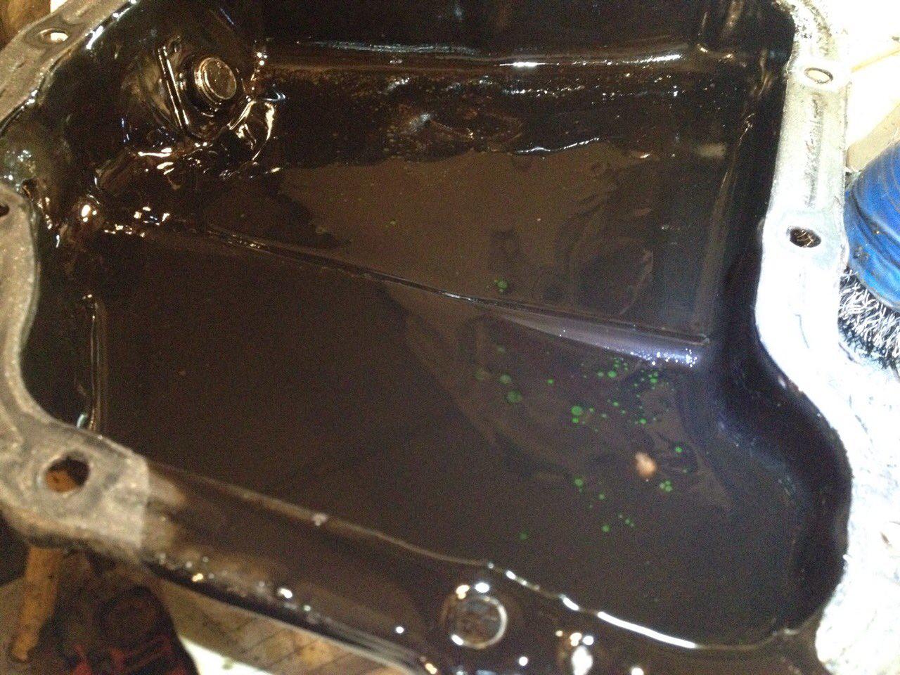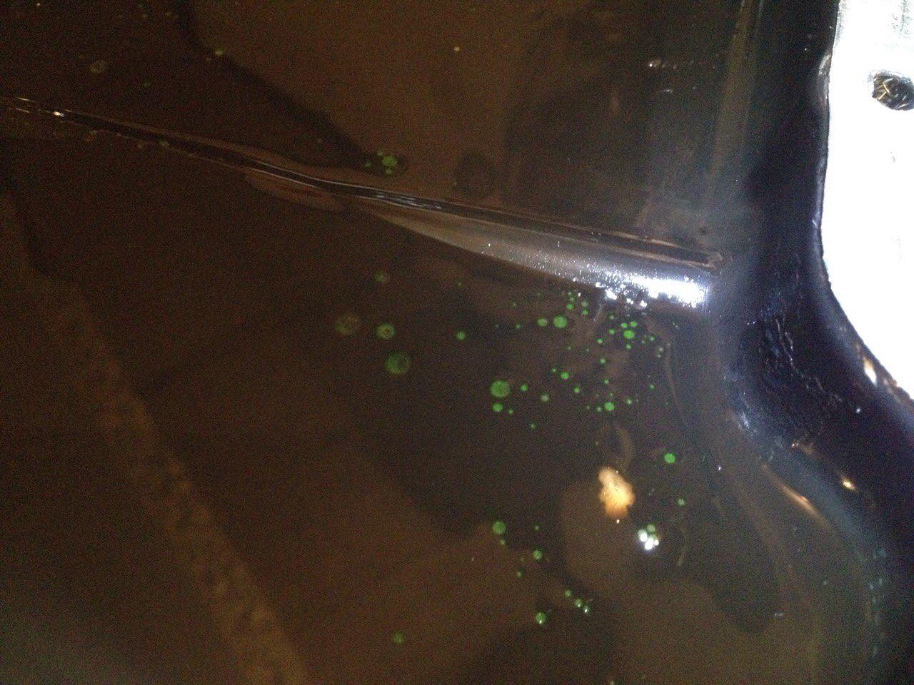 Снял нижний поддон. А там тосол! ... Вообще объективности ради на явном фоне старых отложений свеже-зелёные капли смотрятся ... случайным образом. В моторе работавшем на смеси антифриза и масла на поверхностях была бы белёсая муть. Да и разброс капель нехарактерен для подтекания. Скорее всё-таки случайное попадание, Денис прав. |