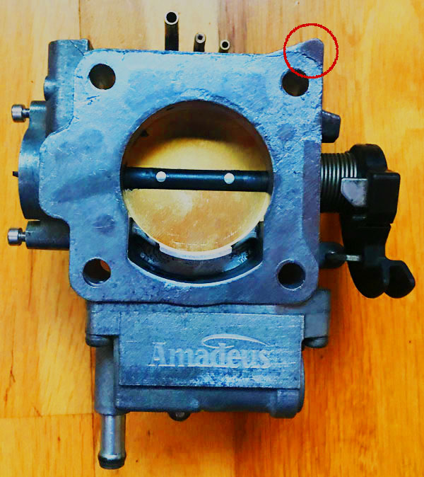 В таком варианте не будет вытекания антифриза из шлангов подвода и слива охлаждающей жидкости из устройства подогрева дроссельного узла с необходимостью последующей его доливки в систему. Можно (не обязательно) снять плюсовую или минусовую клемму с аккумуляторной батареи. 2. Отжав фиксатор, отсоедините колодку жгута проводов от датчика положения дроссельной заслонки. ![]() 3. Отсоедините от воздухоподводящего рукава шланг большой ветви системы вентиляции картера. ![]() 4. Ослабьте хомут крепления воздухоподводящего рукава к дроссельному узлу и отсоедините рукав от патрубка дроссельного узла. ![]() 5. Отжав фиксатор, отсоедините колодку жгута проводов от регулятора холостого хода. ![]() 6. Разведите концы держателя жгута проводов и выньте из него жгут. ![]() 7. Отожмите отверткой фиксатор второго держателя жгута проводов. ![]() 8. Снимите держатель с кронштейна и отведите жгут проводов в сторону. ![]() 9. Отсоедините от сектора на оси дроссельной заслонки трос ее привода, для этого необходимо извлечь наконечник троса привода дроссельной заслонки из паза сектора. ![]() 10. Ослабьте хомут крепления шланга подвода охлаждающей жидкости к патрубку дроссельного узла, сжав пассатижами его отогнутые усики. Сдвиньте хомут по шлангу. ![]() 11. Отсоедините шланг от дроссельного узла. ![]() 12. Отсоедините от патрубков в верхней части дроссельного узла три вакуумных шланга. Предварительно стоит пометить шланги любым способом или запомнить их расположение, чтобы при обратной сборке установить их на прежние места. Оцените состояние шлангов, при необходимости замените их на новые. ![]() 13. Выверните четыре болта крепления дроссельного узла к впускной трубе. Два левых болта крепления дроссельного узла пропущены в сквозные отверстия впускного коллектора и ввернуты в резьбовые отверстия поддерживающего кронштейна. Два болта можно использовать в качестве временных заглушек для отсоединенных шлангов подвода и слива антифриза, предотвращая попадание пыли в систему охлаждения, просто вставив их в шланги. ![]() 14. Отведите узел в сторону и снимите установленную под ним прокладку. Стоит запомнить, как установлена прокладка (контрольный треугольник смотрит вверх и вперед - на радиатор охлаждения двигателя). Уплотнительную прокладку при каждом снятии дроссельного узла стоит заменять на новую, предварительно обильно промазав ее с двух сторон графитовой смазкой. Если считаете, что старая прокладка "еще походит" - предварительно обезжирьте ее спиртом с двух сторон и обильно промажьте с двух сторон графитовой смазкой. Каталожный номер прокладки для мотора 4G18 - MR578832. Каталожный номер прокладки для мотора 4G63 - MD180361. 15. Ослабьте хомут крепления шланга слива охлаждающей жидкости к патрубку дроссельного узла, сжав пассатижами его отогнутые усики. Сдвиньте хомут по шлангу. ![]() 16. Отсоедините шланг от дроссельного узла. ![]() 17. Снимите дроссельный узел. ![]() 18. Если при замене дроссельного узла на новом узле не установлены датчик положения дроссельной заслонки и регулятор холостого хода, переставьте их со старого узла. Выверните два винта крепления датчика положения дроссельной заслонки. ![]() 19. Снимите датчик. ![]() 20. Аналогично выверните три винта крепления регулятора холостого хода (на одном из винтов установлен держатель жгута проводов). ![]() 21. Снимите регулятор холостого хода. Оцени