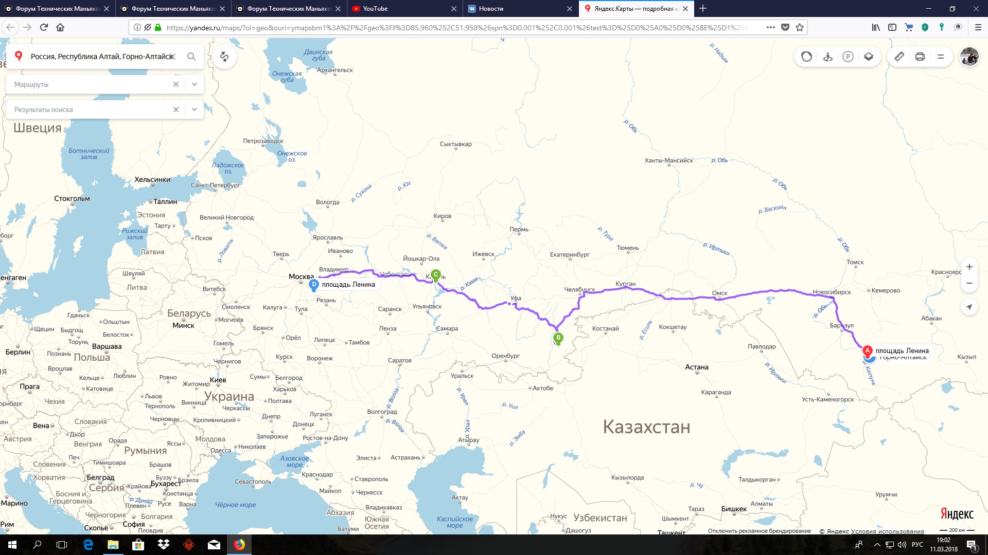 Так, как в теме данной ответов нет, то поделюсь собственными впечатлениями от автомобильных дорог, ведущих в славную Республику Алтай. Ехали 3 дня и две ночи. Путь пролегал по трассе М7 до УФЫ, Далее по трассе М5 до Челябинска, затем по Р254 через Курган. В Казахстан не стали соваться, много лишних нюансов. Ехали через Ишим, далее Р402 на Омск, в Омске вновь вернулись на Р254 и до Новосибирска. В Новосибирске свернули на Р256 - знаменитый Чуйский тракт и до Горно-Алтайска.
