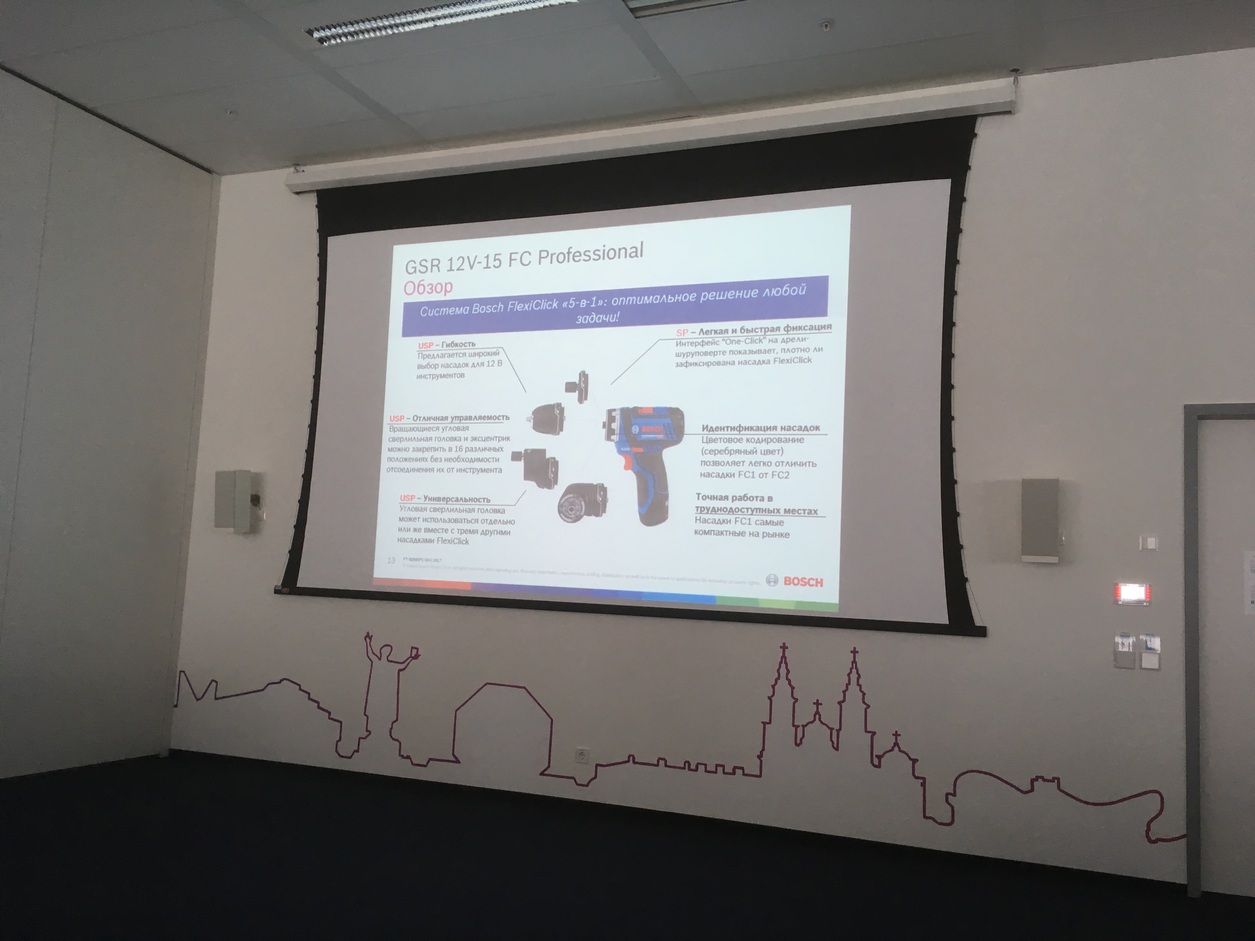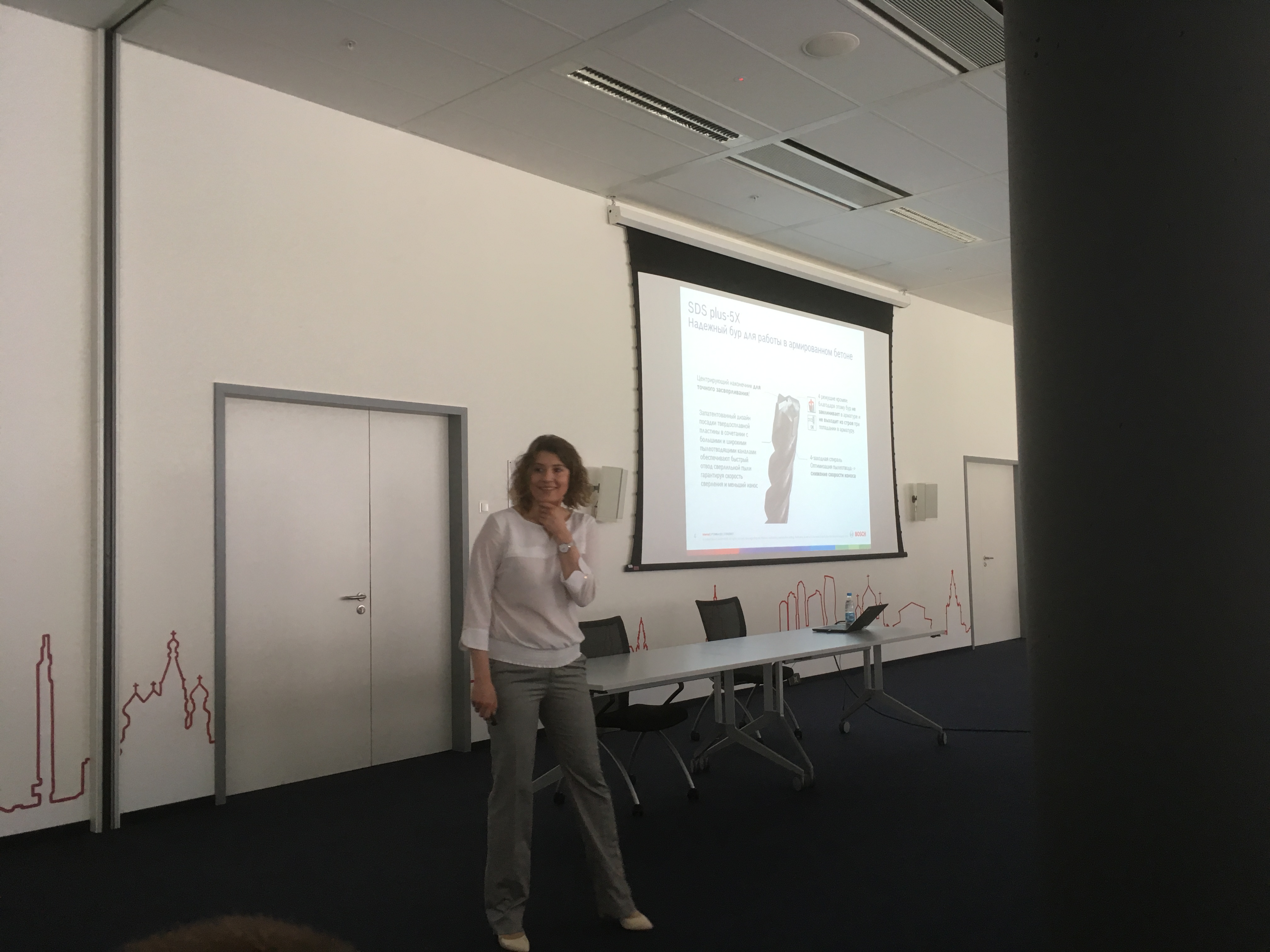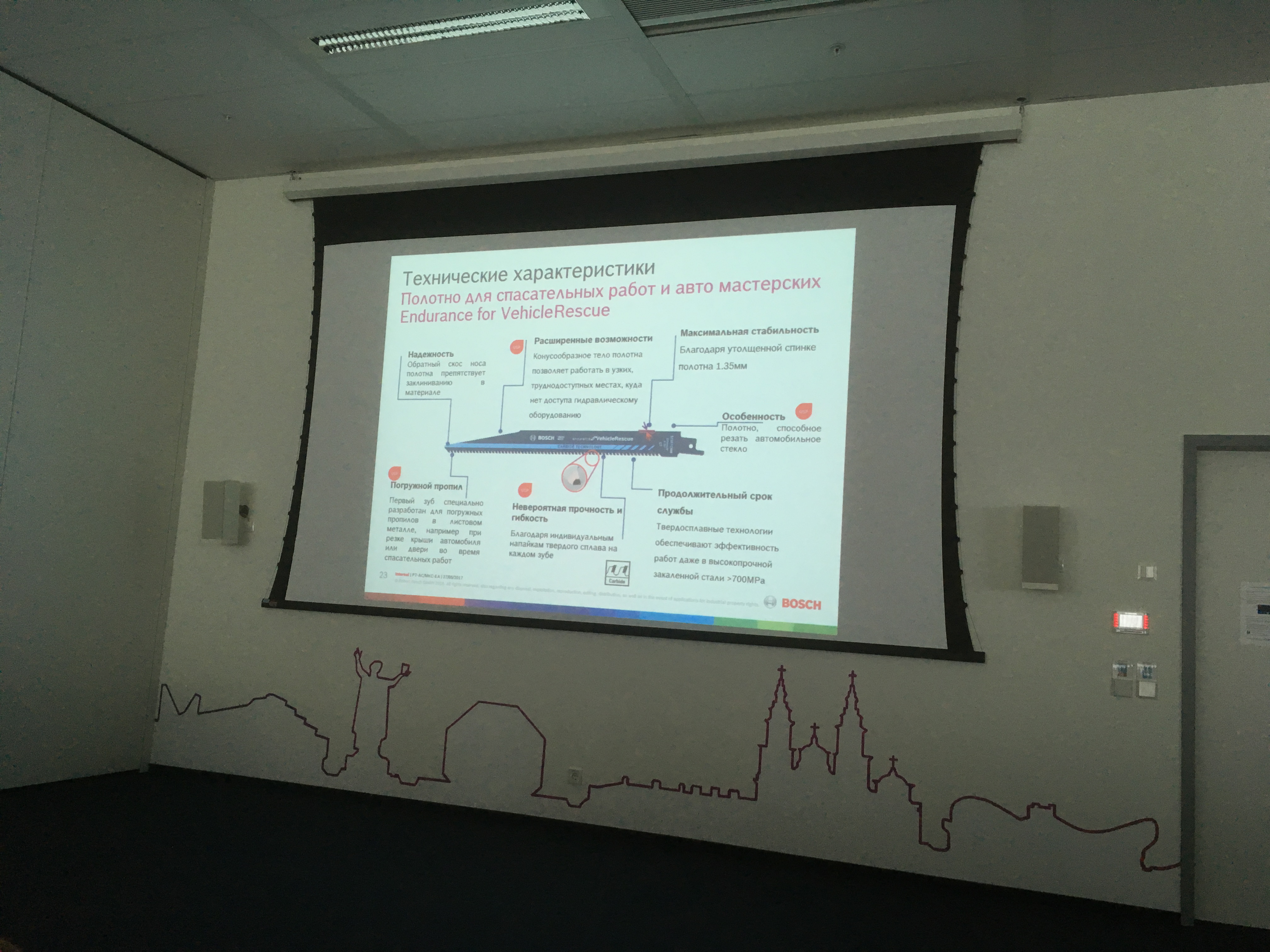 После регистрации , инструктажа под роспись о технике безопасности и небольшой кофе-паузы , состоялась теоретическая часть, на которой представители компании BOSCH презентовали новинки проф. инструмента, прочие достижения. Проинформировали о изменениях в маркировке синей линейки инструмента, переходе на