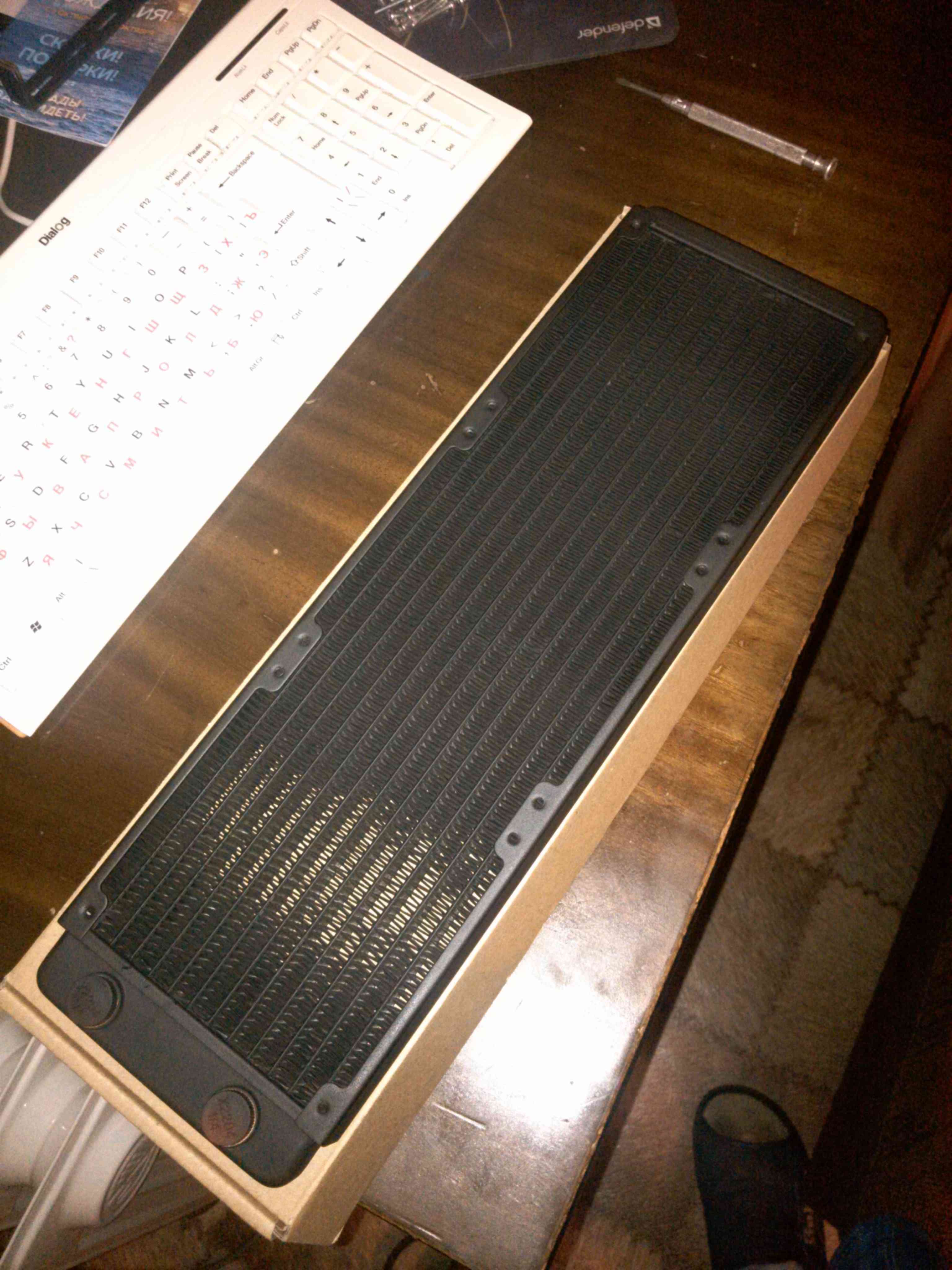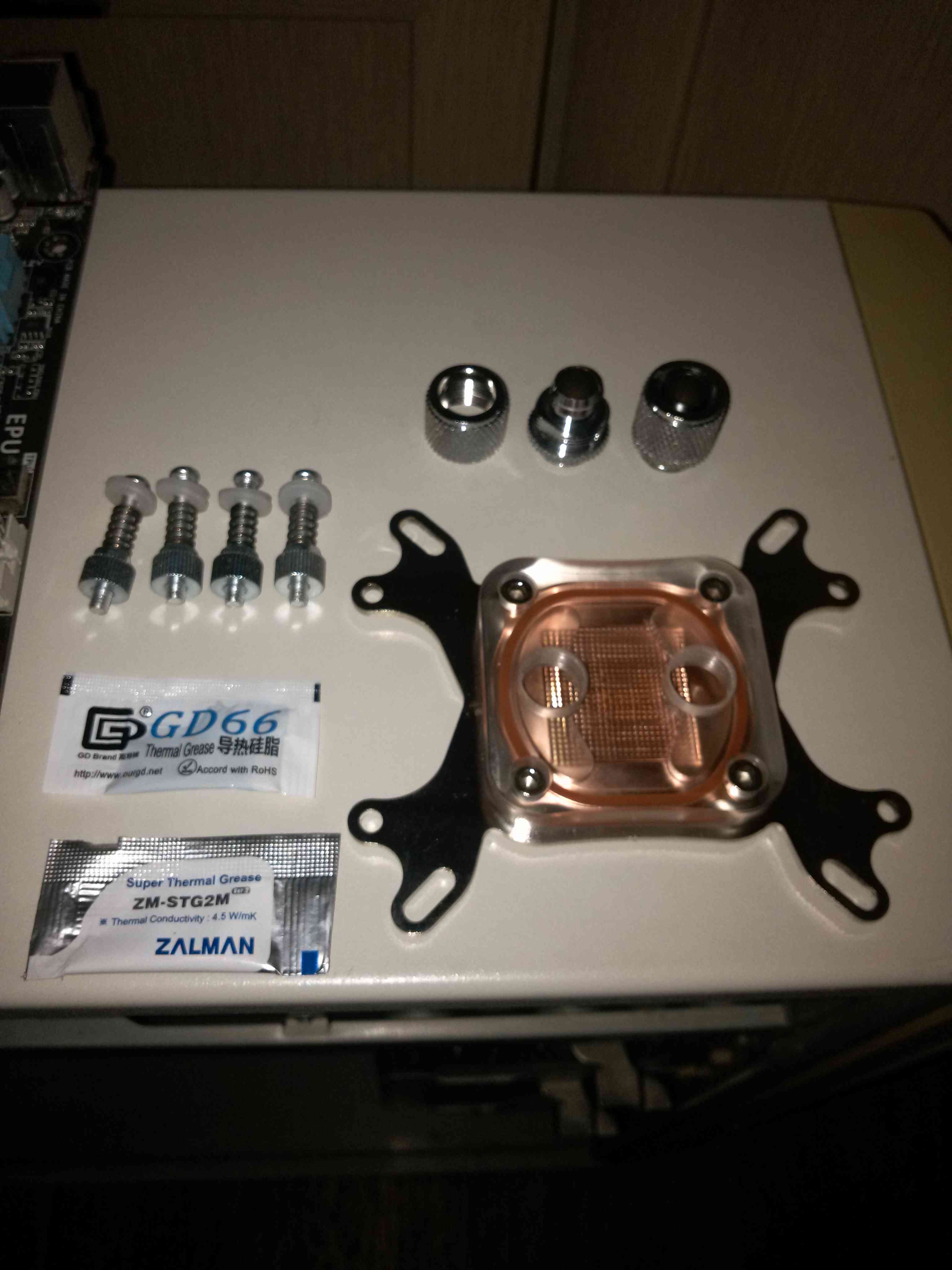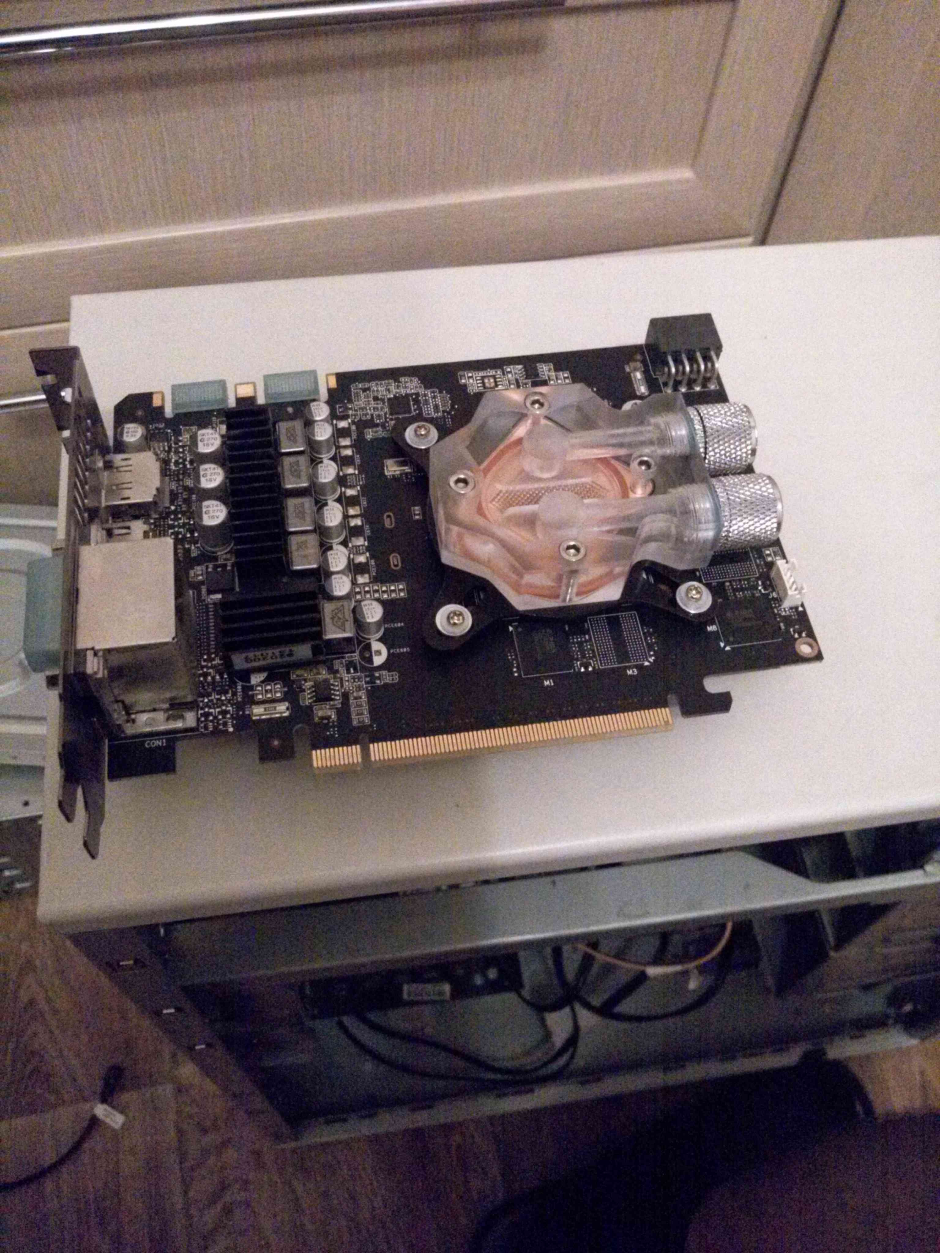 С видеокарты снял стоковый радиатор с вентиляторами. И прикрутил водоблок.