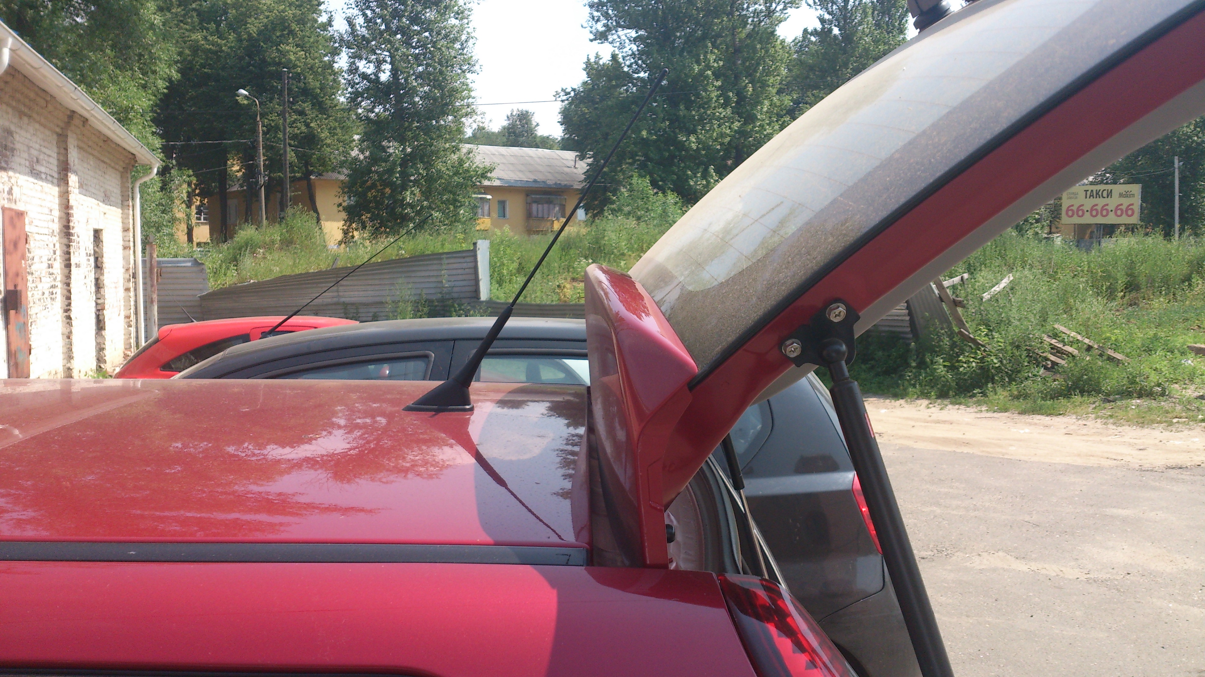 Все там родное)) она не прям в него упирается а чиркает при открытии об ребро спойлера