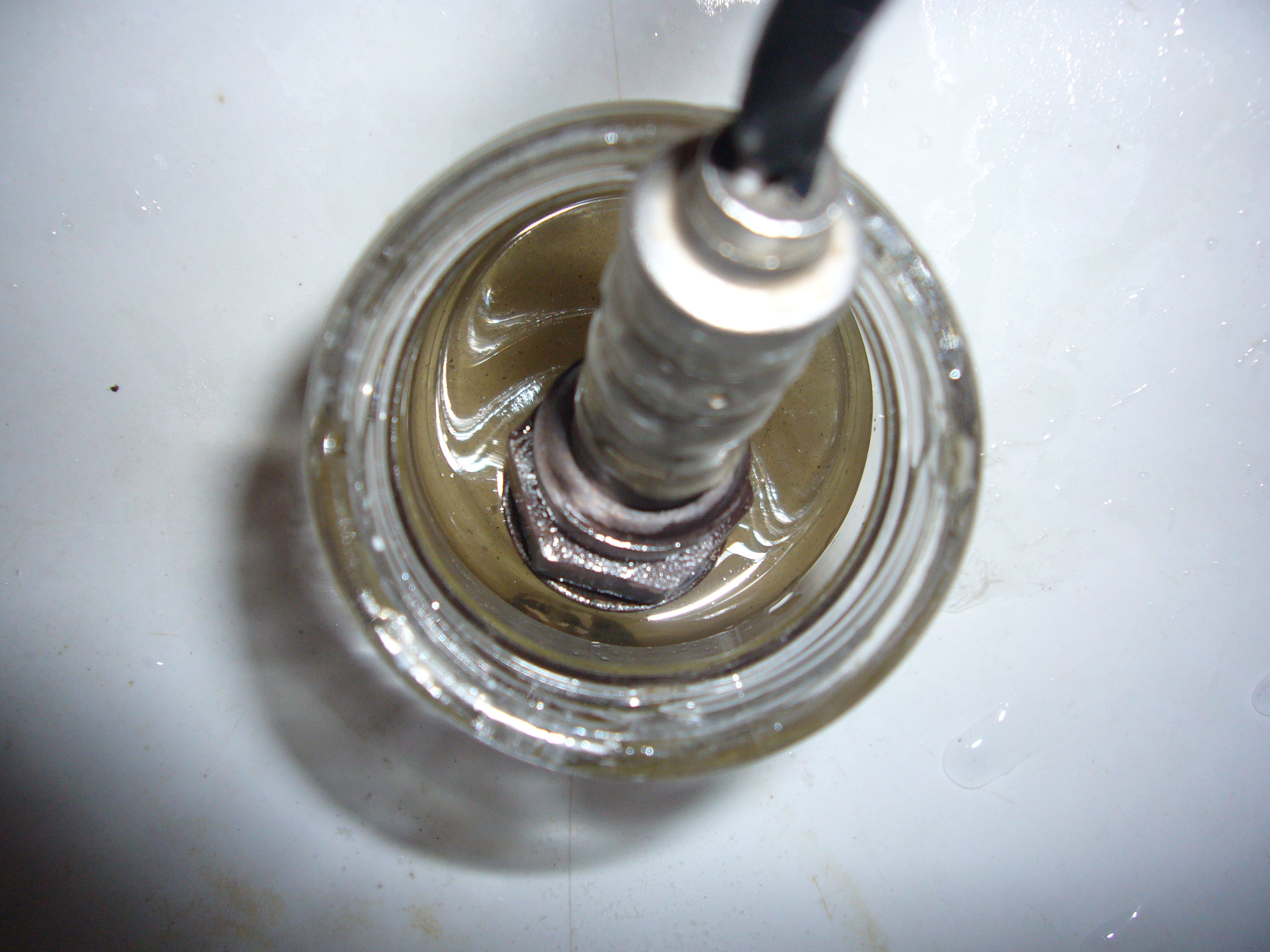 Прочистил для профилактики лямбду в кислоте. За 110 тыс. км. пробега стала черной и отверстия в защитном колпаке еле просматривались. Замочил на минут 25, почистил зубочисткой отверстия и сам колпак зубной щеткой. Все очистилось, цвет колпака стал родной темно-зеленый. Кислота стала мутной и серого цвета. По поведению авто пока ничего не скажу, т.к. проехал только пару километров.