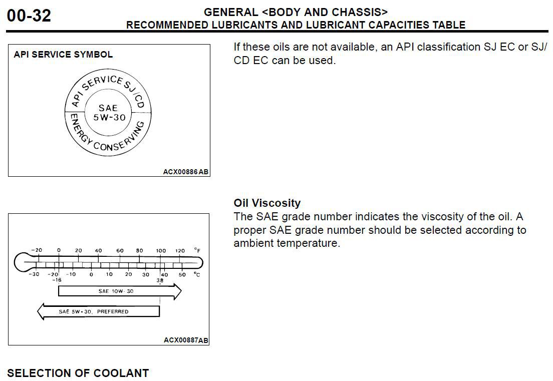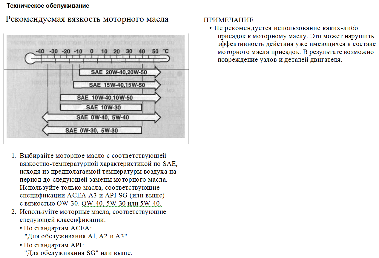 Масло 5w-30 используется при температуре воздуха не выше +10 гр. Цельсия Для лансера то же есть такая табличка: Исходя из Ваших табличек, 5в30 как раз используется до +40 градусов. По поводу таблички для лансера - не надо табличек от Рольфа пожалуйста, они вначале всем советовали mobil 1 0w40, однако люди говорят что с 2006го начали лить оригинальное масло из за указания от самой митсу. И в конце концов, зайдя на офф. сайт митсу - мы не найдем там вообще 0w40 или 5w40, не говоря уже и о Xw50.. Моторные масла и специальные жидкости Mitsubishi Motors * |