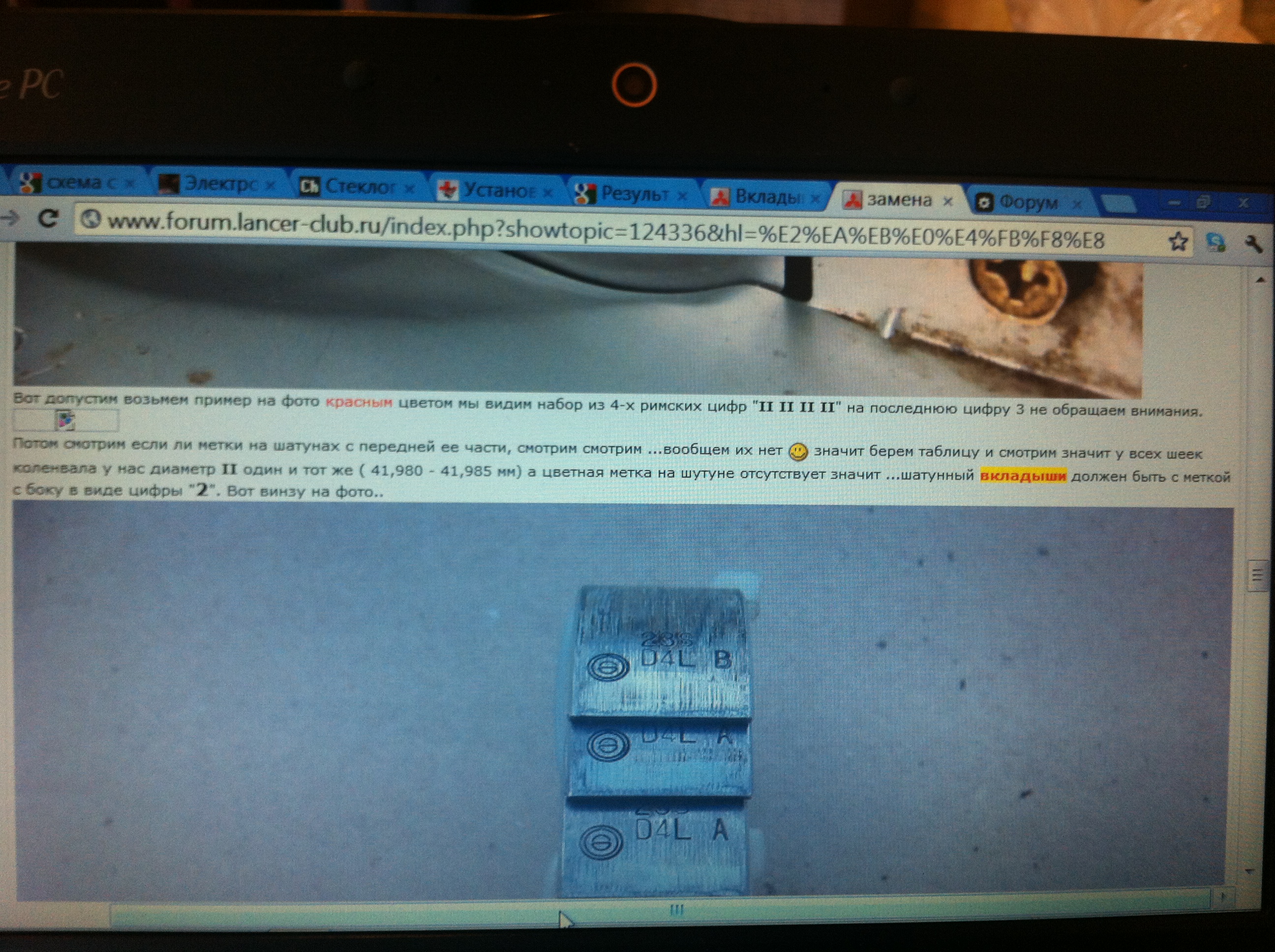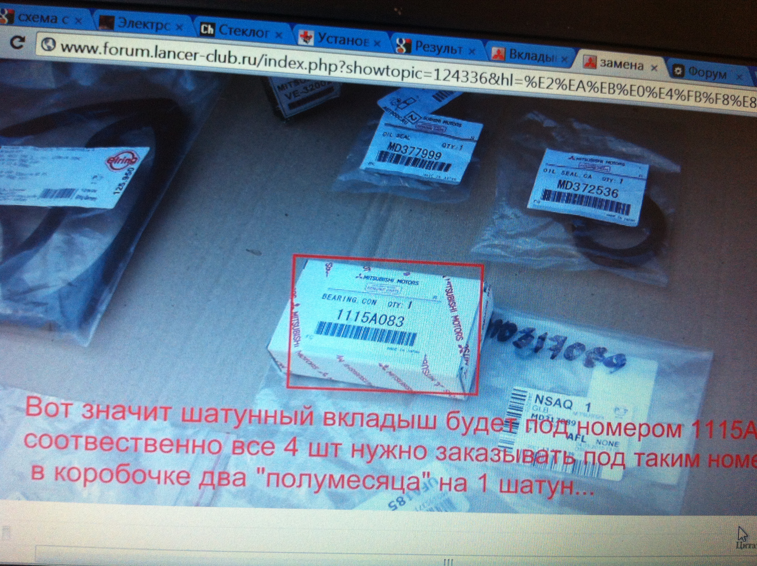 У мня тоже жрет!((( с чего начать??? ну чтоб по карману не сильно для начала? а состояние колец как проверить??? я так полагаю замерять компрессию, а потом масла в поршня капнуть и еще раз замерять??? пробег 166 000 дв 1.6 1,Комплект поршневых колец, 2,Маслосьемные колпачки, 3,Прокладку под головку, 4,возможно потребуется замена шатунных вкладышей вот мой вкладышь |