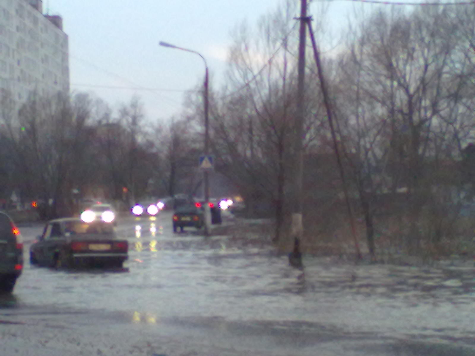 Маленькое болотце разлилось так что 2 полосы затопило. |