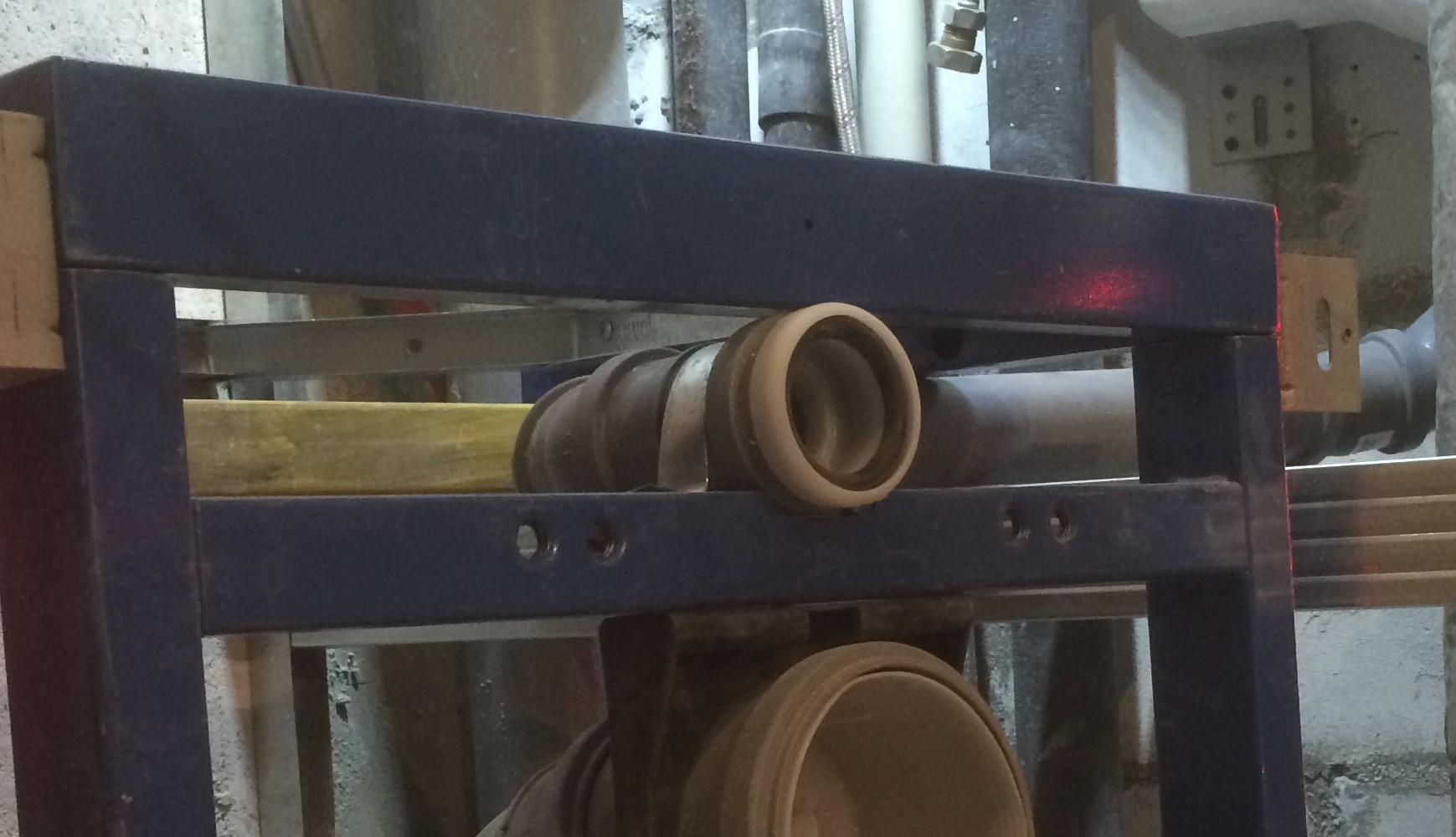 Людмила, трасса слива от бачка на раме инсталляции заканчивается соединительной ( т.н. ремонтной ) двухраструбной ПВХ муфтой ∅ 50мм.