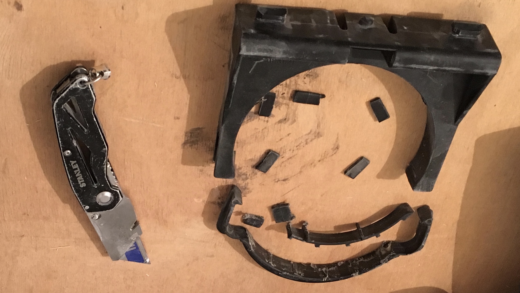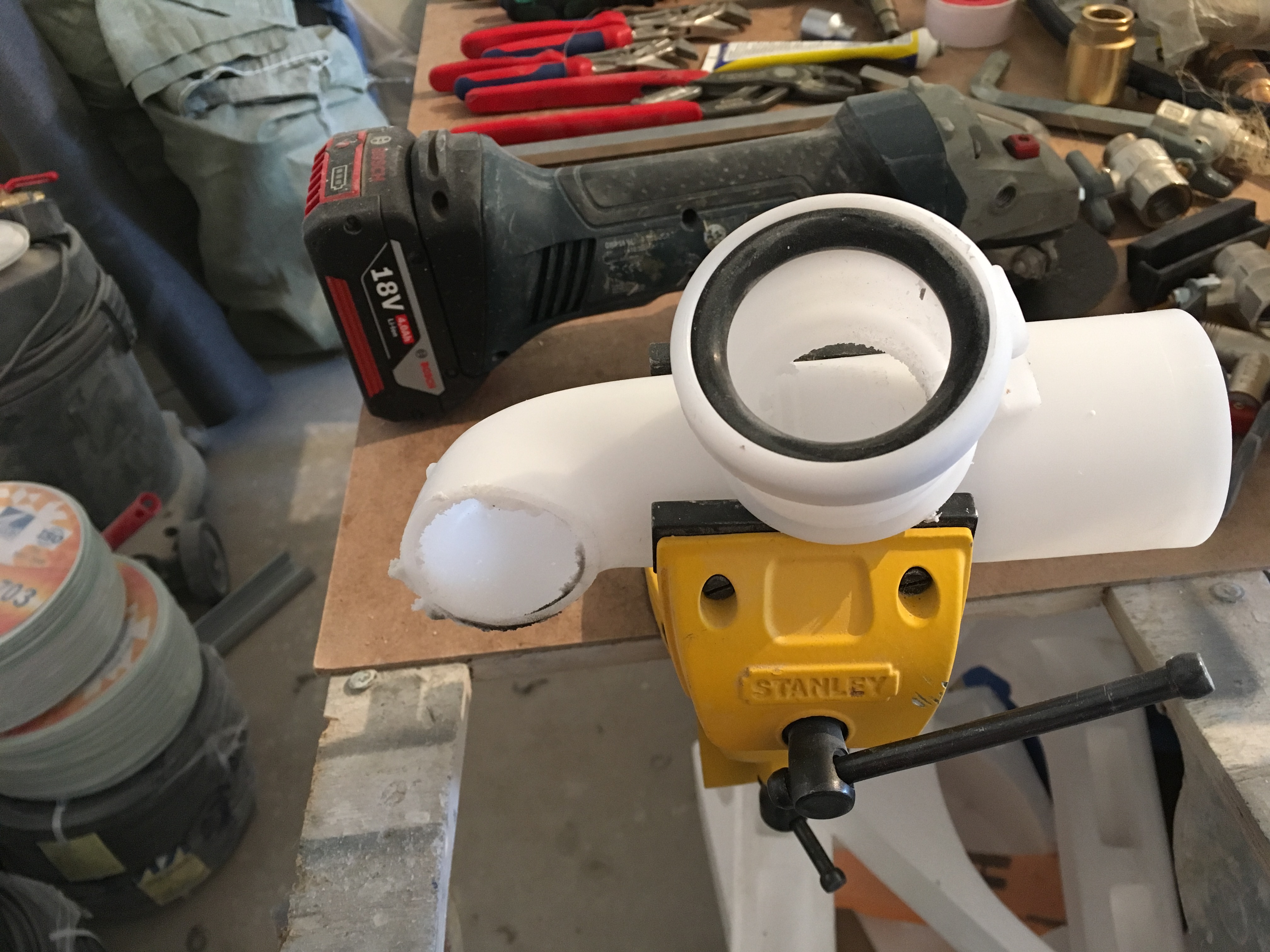 От родного отвода отрезаем нижнюю горизонтальную часть За манжетным раструбом стачиваем ребра до образования цилиндрической поверхности, и запресовываем в соединительную муфту! Скоро начну очередной проект, выложу фото данного процесса, и заодно и как закрепить в родной клипсе родной защелкой 110-ю горловину взамен штатного отвода. |