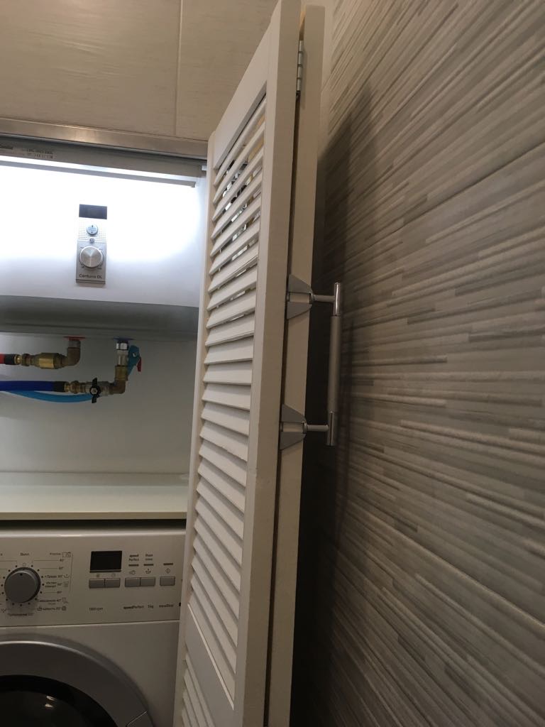 Створки обрели ручку! (IMG:style_emoticons/default/smile.gif) В данном случае ручка при открывании обращена не к стене, а вовнутрь, из-за единственного возможного варианта монтажа; т.к. "ось" левой створки смещена влево, и при монтаже с разворотом, ручка упирается в стену , створки складываются не полностью, из-за чего лоток для порошка не "выезжает". (IMG:style_emoticons/default/cool.gif) (IMG:style_emoticons/default/smile.gif) |