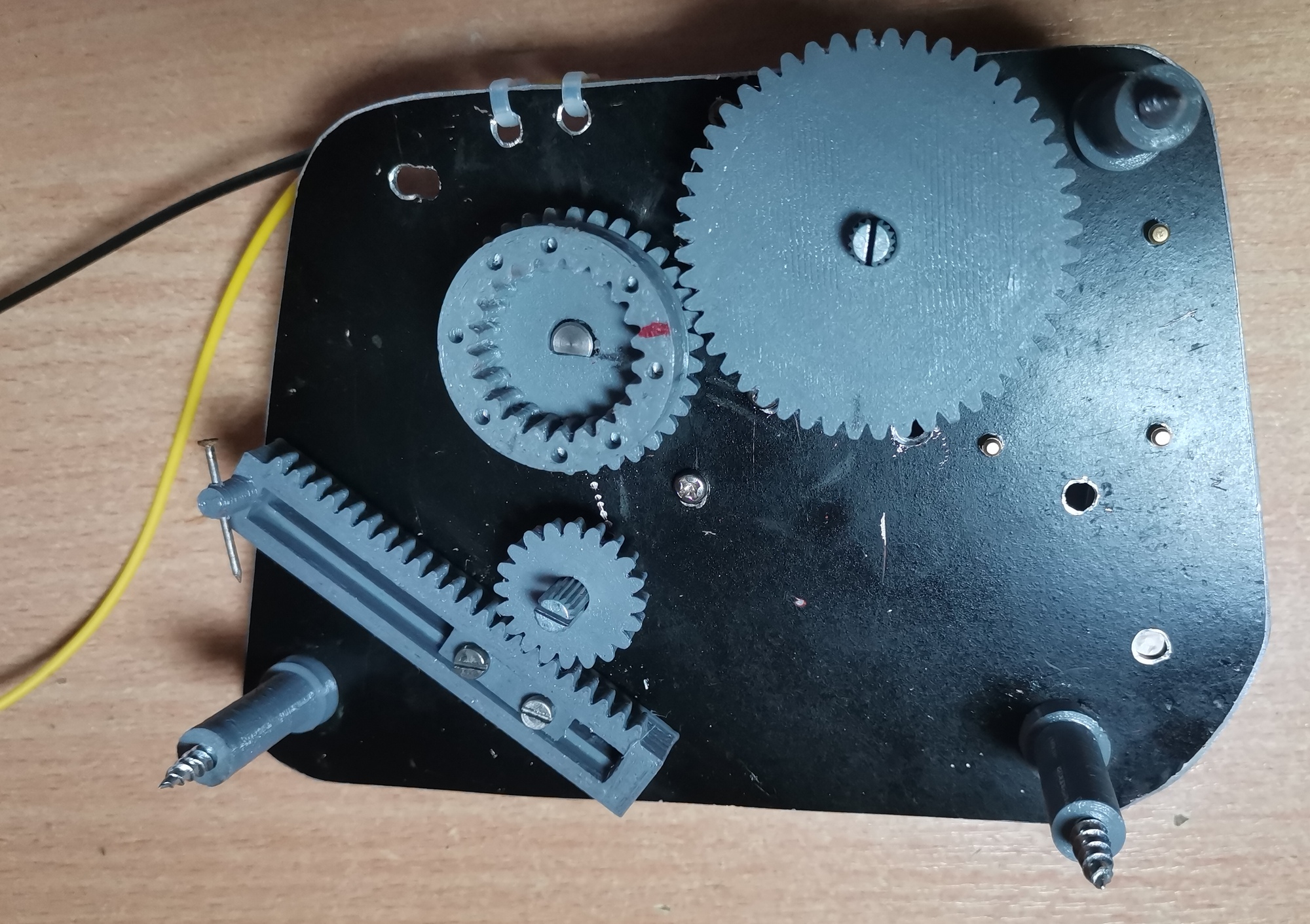 Решил поделиться своим решением данного вопроса. Идея разборки половины машины, даже в самом «лайт» варианте, меня никогда не привлекала, в том числе и потому что нужно стравливать фреон, а потом его опять заправлять. Да тому же отзывы проделавших данную операцию были неоднозначные. По сути, проблема в том, что из за попадания пыли, которая работает как абразив, появляются дефекты поверхности и трение даже между отмытыми и смазанными частями механизма все равно остается затрудненным. Поэтому была реализована идея, которая иногда попадалась в многочисленных обсуждениях. Смысл такой. Снимаются все шестерни механизма, кроме той, что находится непосредственно на заслонке. Должно получиться так: Дело в том, что штатный механизм крутится тяжелее, чем сама заслонка. Вот эту шестеренку руками прокрутить легче, чем дергать за рычаг. Поэтому нужен механизм, который будет крутить ее за нас. Крутить будем редуктором с алиэкспресса. Был взят редуктор на 12 вольт и 6 оборотов в минуту. С таким коэффициентом передачи редуктора заслонку он может повернуть в любом состоянии. Управление сделано штатным тросом, который толкает зубчатую рейку, вращающую потенциометр регулировки. Сначала была мысль схалявить и разместить потенциометр регулировки к штатной ручке, но этот колхоз нам не нужен. Нужно сделать так, чтобы была возможность все вернуть исходное состояние. Вся конструкция размещается на пластине из алюминия толщиной 1,5 – 2 мм. На фото ниже процесс примерки пластины. Если будете делать, лучше пару отверстий сделать овальными, чтобы легче было попасть в стойки, к которым будет крепиться пластина. С обратной стороны видна ведущая шестерня, надетая на шестерню заслонки. Шестерня сложная, пришлось сделать из двух частей. В сборе все выглядит вот так. Сверху: Со стороны заслонки: Установка на печку Потенциометр сверху отслеживает позицию заслонки, потенциометр снизу задает ее положение. Он управляется штатным тросом заслонки, надетым на зубчатую рейку. Ход троса порядка 40 мм. Плата управления сделана на основе м/с TLE4209A. Это м/с управления регулировкой фар. Была в наличии (выпаяна из платы какого то старого регулятора), но в Чипе-Дипе ее можно купить за совсем недорого. Схема включения стандартная, как в мануале. Питание берем с ACC (можно найти в жгуте магнитолы или взять от прикуривателя). Печатать нужно будет следующие детали: шестерня ведущая 1 часть и 2 часть, шестерня ведомая (надевается на верхний потенциометр), шестерня управления (надевается на нижний потенциометр), зубчатая рейка, крепление зубчатой рейки, стойки (3 шт).