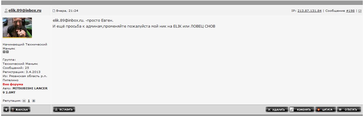 И ещё просьба к админам,променяйте пожалуйста мой ник на ELIK или ЛОВЕЦ СНОВ |