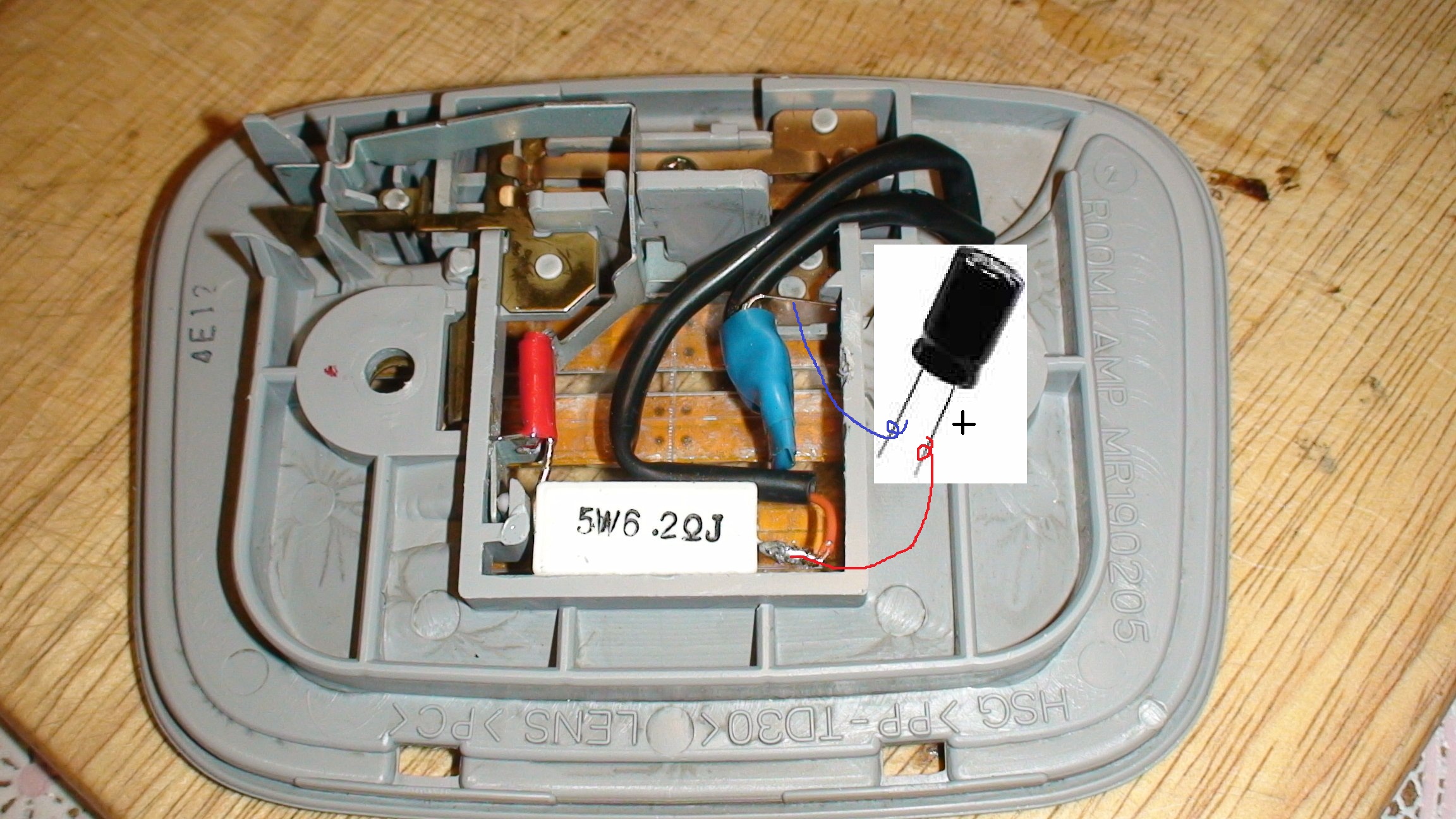 Спасибо огромное. Как эта штукенция называется электролит? Т.е ни чего не отпаивая на плафоне , просто сверху напаять эту банку? На ней + обозначен?