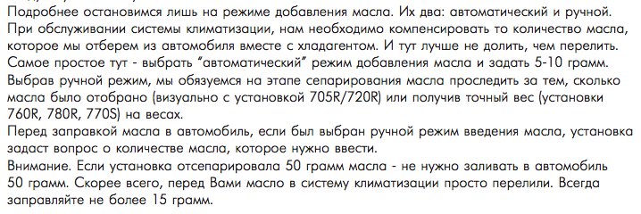 Приветствую. Сегодня заправлял кондиционер (аппаратом с полной выкачиванием фреона и масла, диагностикой итд, по итогу диагностики печатается чек с информацией) В итоге в системе было порядка 350 грамм фреона, и 49гр масла выкачано. Фреона залили 500 гр (как указано на наклейке под капотом) масла добавили 5 гр. Мастер сказал что 49 это очень много, мол скорее всего предыдущий заправщик перелил, в компрессоре мол масла достаточно. Выглядит как то подозрительно, не мало ли масла он залил?