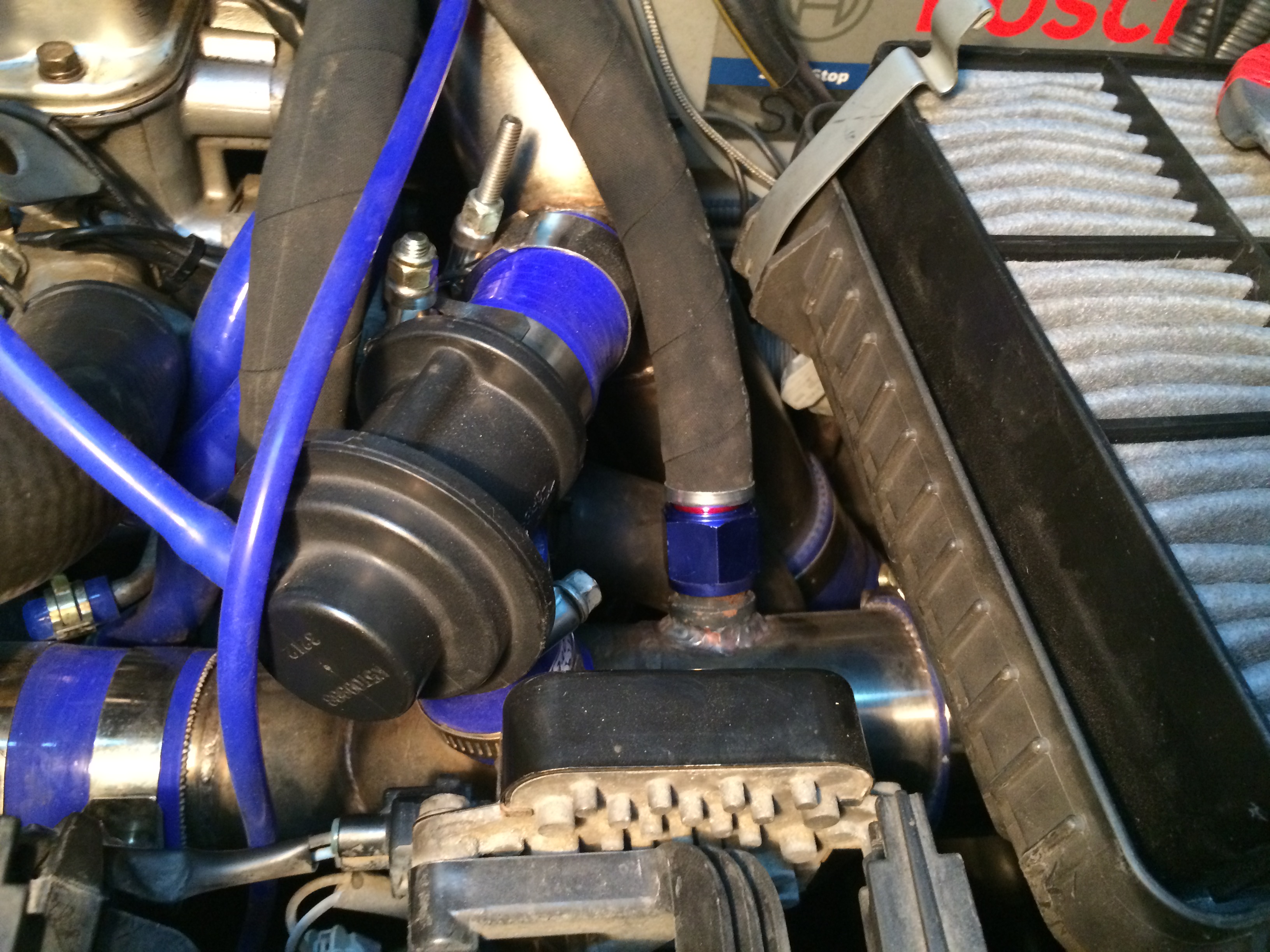 По итогу - две трубки внутренним диаметром 15мм (переделаны штуцера на клапанной крышке), каждая на свой штуцер перед турбиной. Каждая трубка со своим оил-кетчем. |