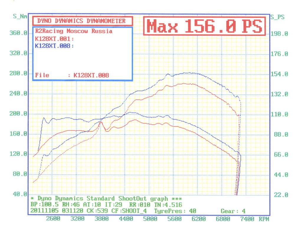 Впуск/выпуск/валы? Итог: +20л/с к стоку. Очень неплохо для атмосферника. Просто выпуск и валы (без впуска). Глушители штатные (основной + вторичный), пламегаситель прямоточный вместо второго ката и паук 4-2-1. Причём красное это тоже не сток, это валы/выпуск с плохой настройкой. Там было что-то около 143л.с. макс. Полный сток вообще 135л.с. по ПТС, но на стенде с колёс есть слухи (текстовые файлы где-то тут чьи-то выкидывали) что там 128л.с. Так что итоговый прирост 128->156 весьма-весьма хорош, я считаю. А момент так вообще (по ПТС 176Нм) 185-190Нм с ~2000 по ~3800 и пик уходит за 200Нм!!! (IMG:style_emoticons/default/cz.gif) В итоге я очень рад, т. к. всё это без перделок и нулевиков. А по сути, я привёл двигатель, я считаю, в изначально задуманное состояние (Mitsubishi Eclipse 1 и 2). Машина осталась гражданской, ничего не пердит, ХХ 750 об/мин и всё такое (IMG:style_emoticons/default/smile.gif) Артем круто! Теперь заезжай со своим другом у которого сток! (IMG:style_emoticons/default/drinks.gif) Да, над будет его выцепить (IMG:style_emoticons/default/friends.gif) |
